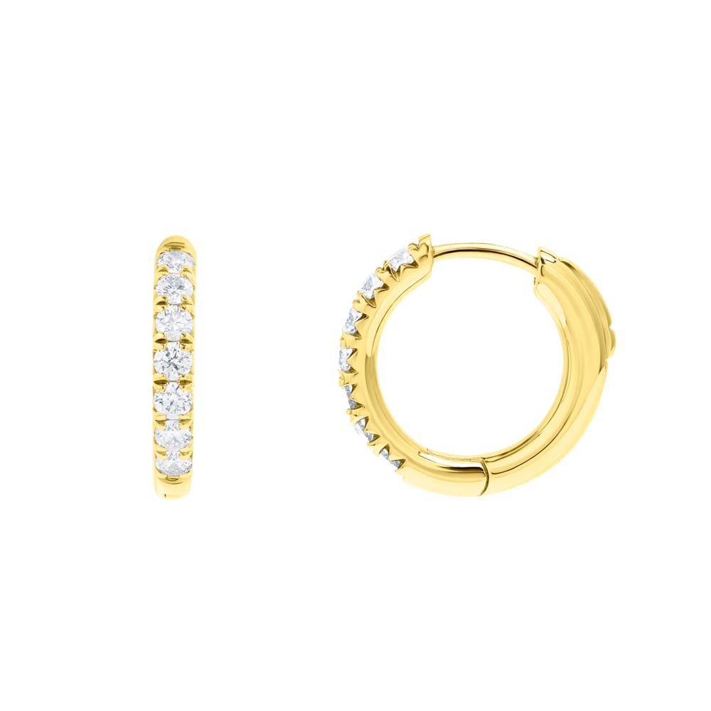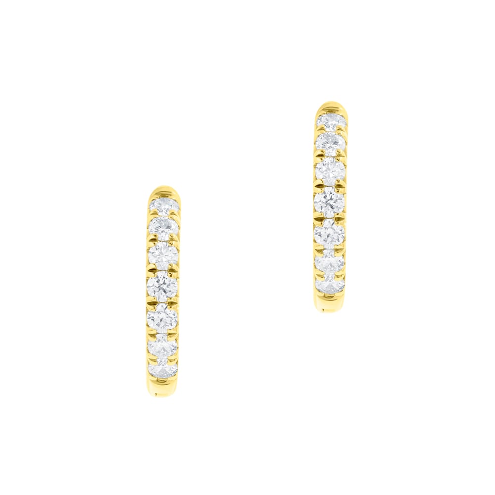 Expertly crafted in 18ct yellow gold, these elegant 14mm huggie hoop earrings are designed with precision and artistry by Robert Cliff Master Jewellers. Each earring is claw-set with brilliant-cut diamonds, totalling 0.50ct, delivering radiant sparkle and refined sophistication.