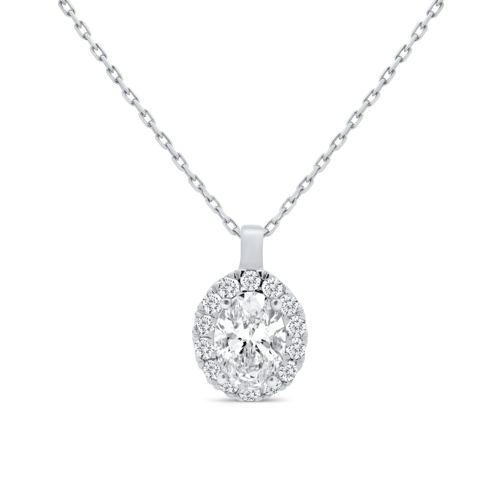 14ct White Gold Oval Lab-Grown Diamond Pendant Necklace – Halo Design with Claw-Set Brilliance