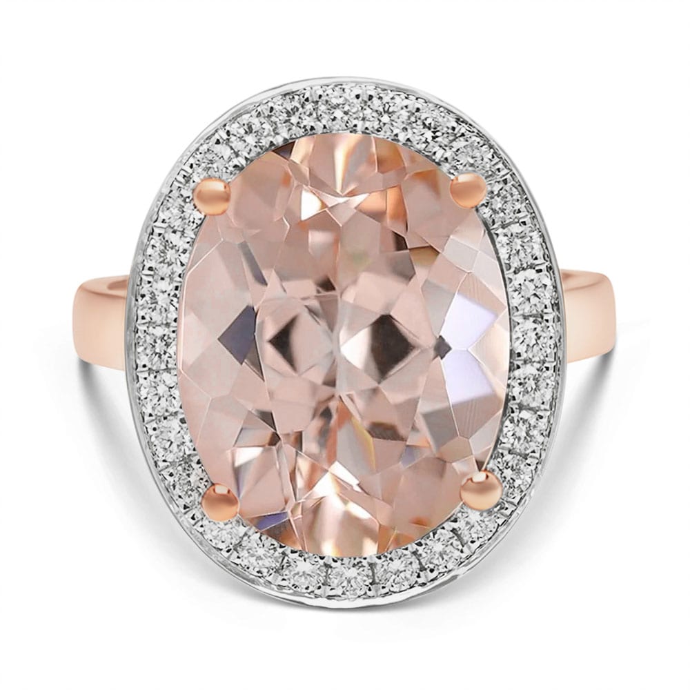 18ct Peach Morganite and Diamond Halo Ring