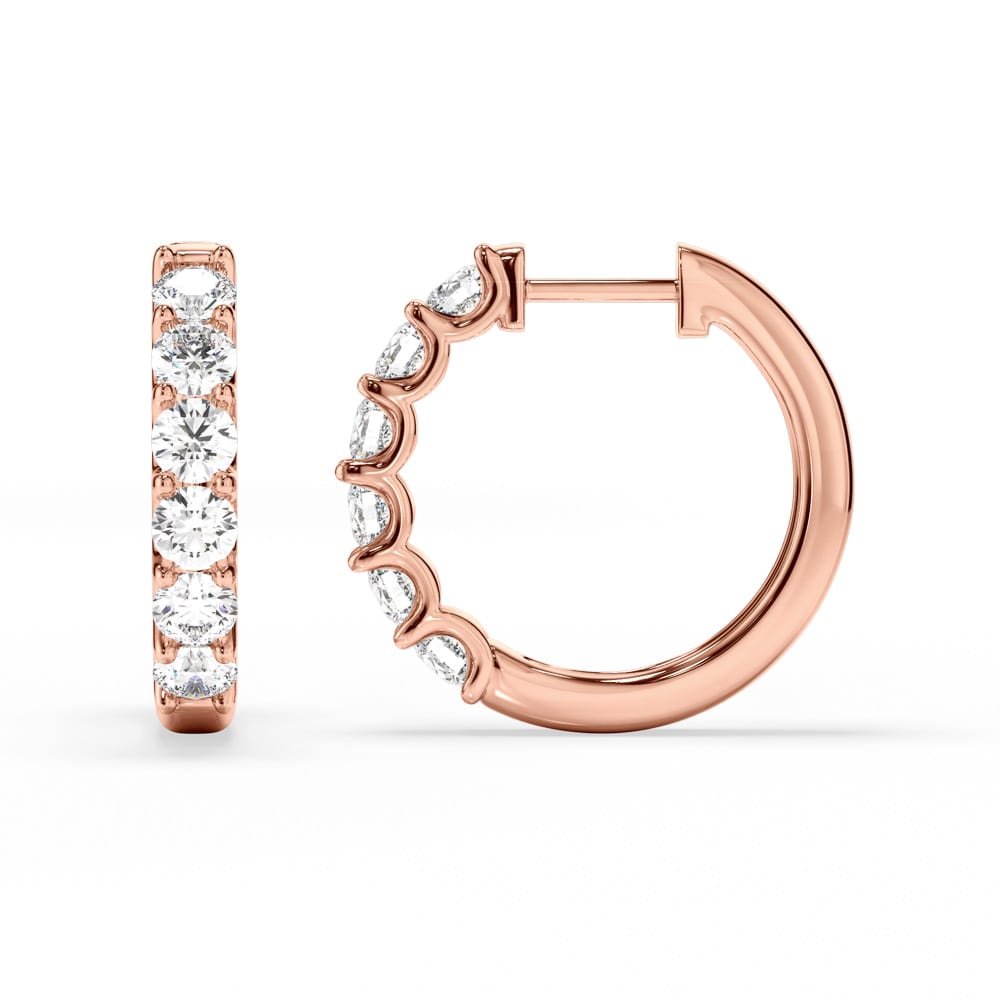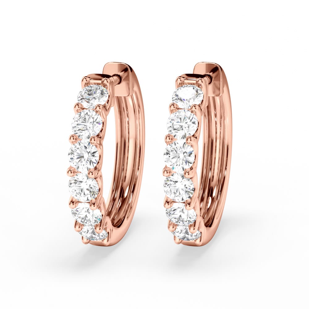 18ct Rose Gold Diamond Huggie Earrings | 1.28ct Shared Claw-Set Brilliant-Cut Diamonds