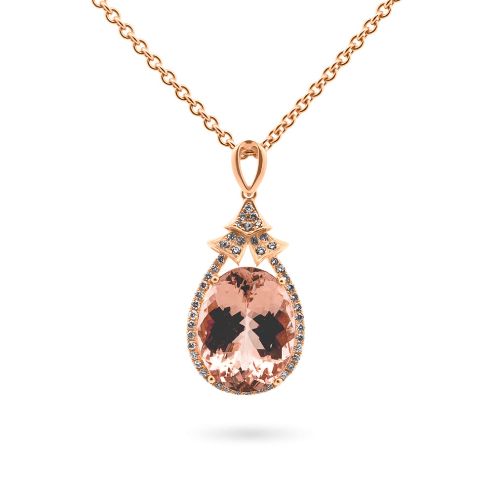 18ct Rose Gold Morganite & Diamond Necklace | Oval Cut Pendant with Bow-Tie Diamond Cluster