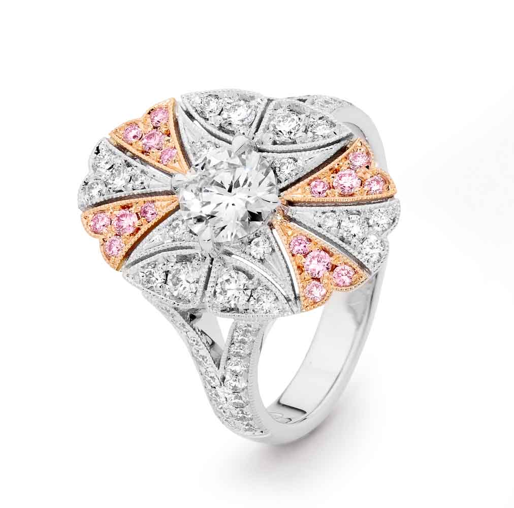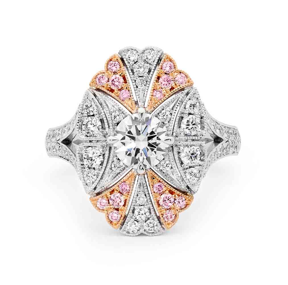18ct White Gold Argyle Pink Diamond Ring | Art Deco Inspired
