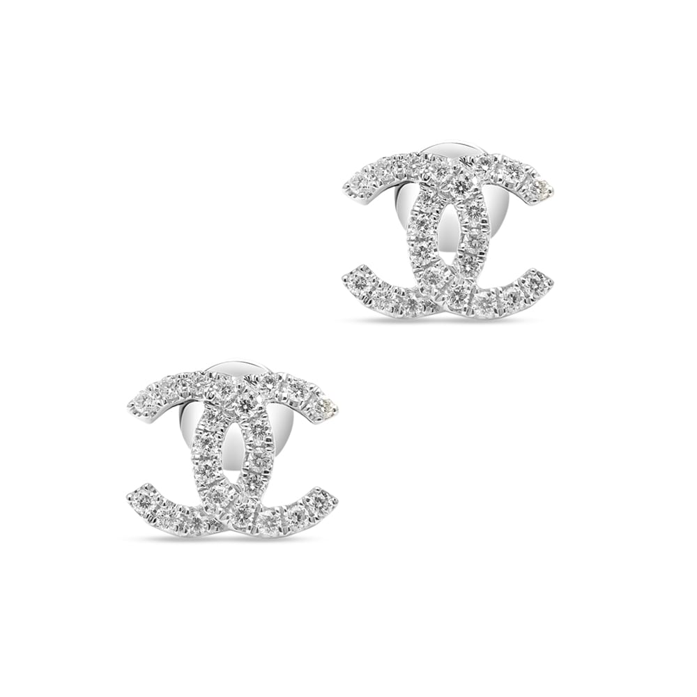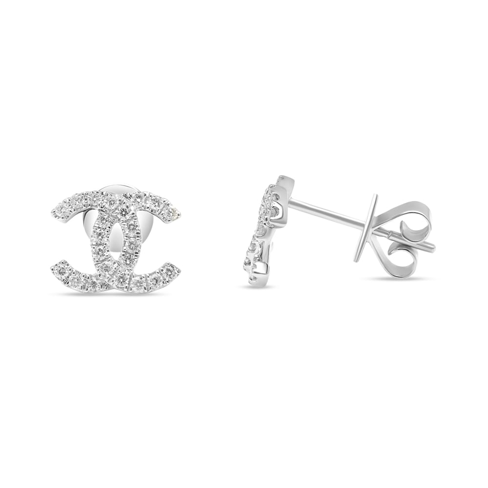 18ct White Gold Diamond Interlocking C Stud Earrings
