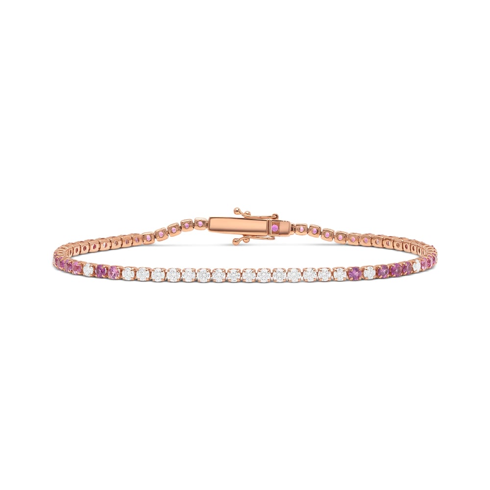 18ct White Gold Gradient Pink Sapphire & Diamond Tennis Bracelet