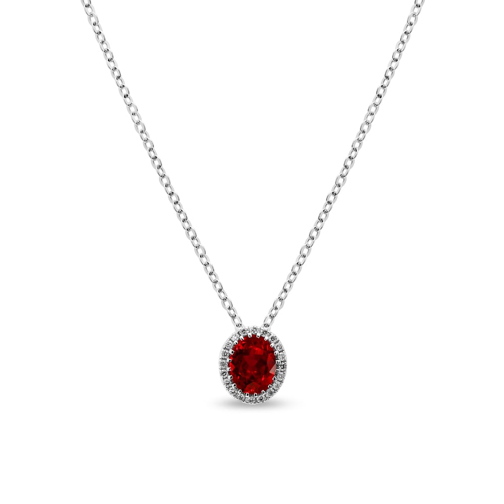 18ct White Gold Ruby & Diamond Halo Pendant