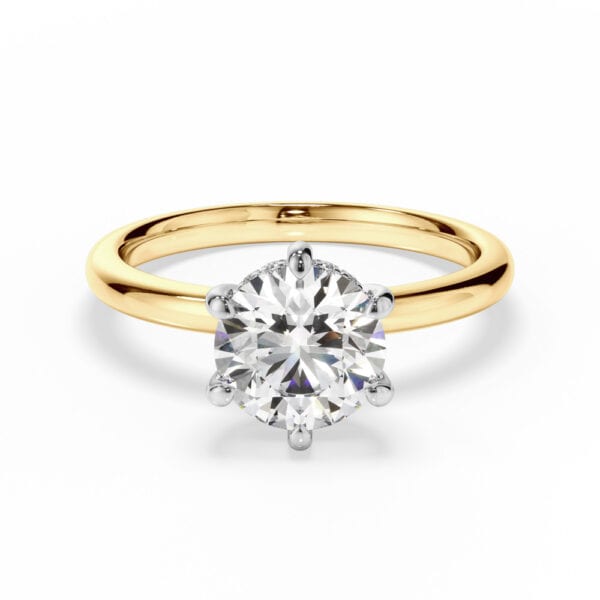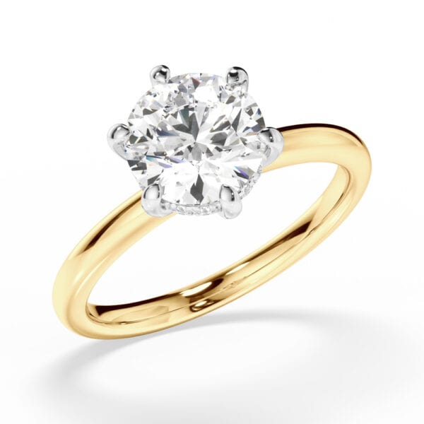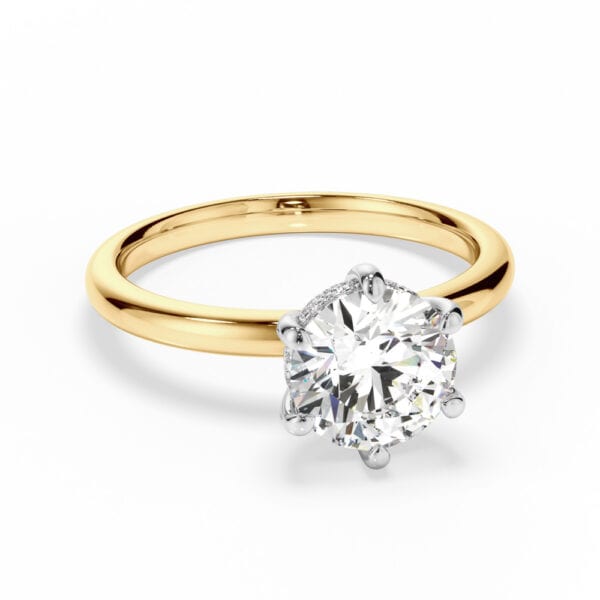 A seamless blend of modern design and timeless luxury, this handcrafted ring features a central brilliant-cut diamond in a refined six-claw setting, elevated at 7.40mm. Subtle yet striking, a hidden halo of micro claw-set diamonds lines the underside of the setting, adding dimension and brilliance. The slim 2.00mm band, sculpted in high-polished 18ct yellow gold, delivers a sleek, contemporary silhouette—hallmarked by the signature artistry of Robert Cliff Master Jewellers.