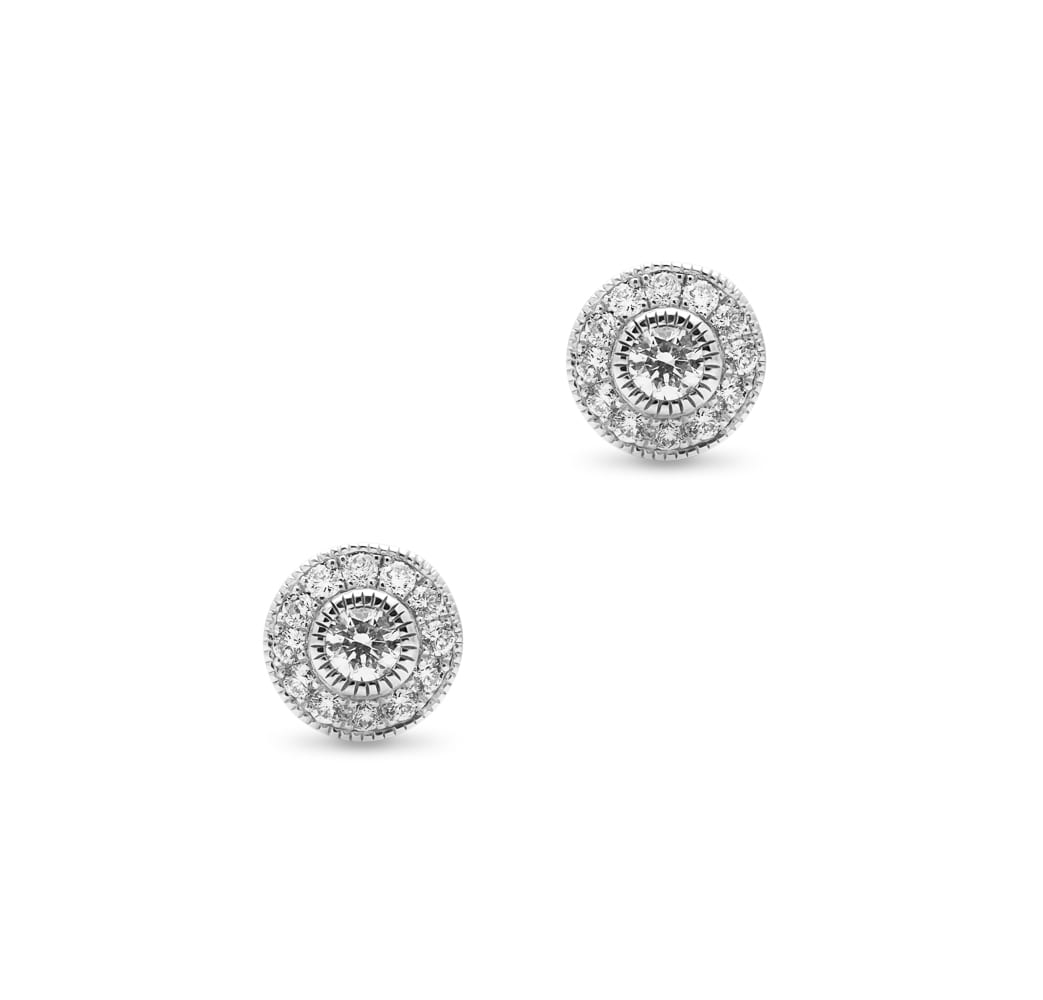 9ct White Gold Art Deco Diamond Halo Stud Earrings
