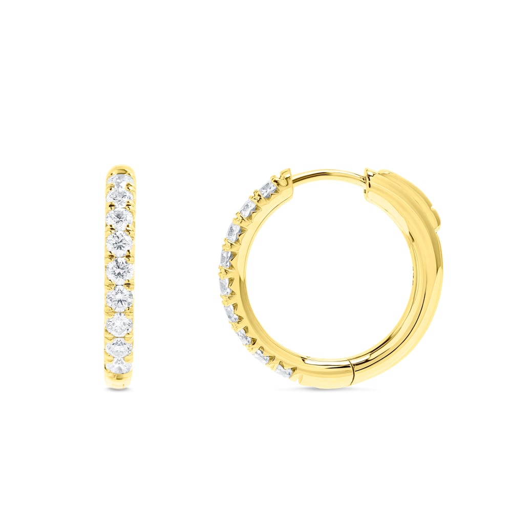 9ct Yellow Gold 18mm Diamond Huggie Hoop Earrings