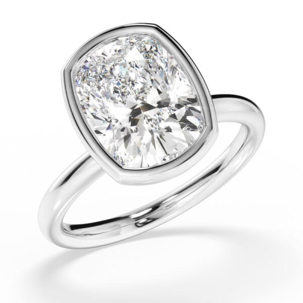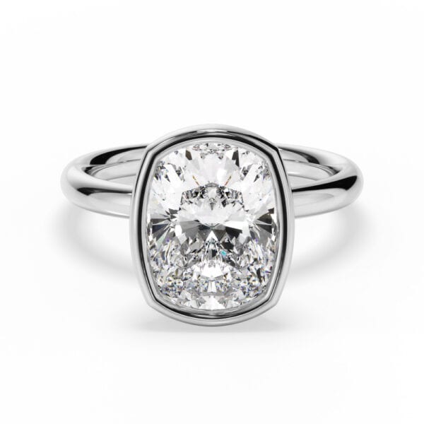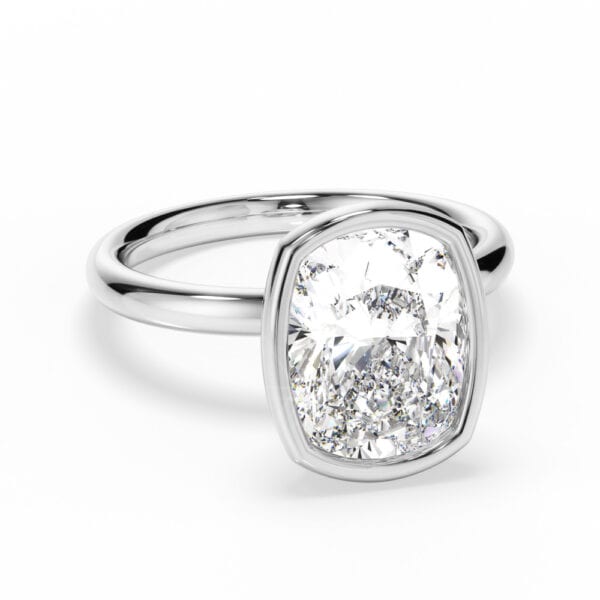 Bezel-Set Cushion Cut Diamond Engagement Ring