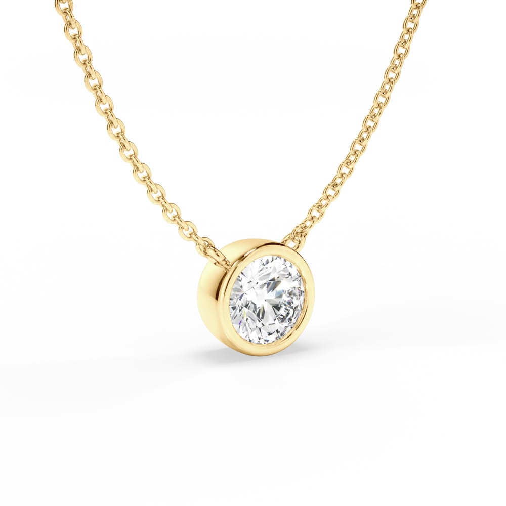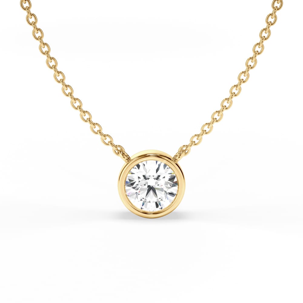 An elegant 18ct gold necklace showcasing a brilliant-cut diamond in a refined bezel setting, designed to glide smoothly along the chain for effortless sophistication. Accompanied by a 45cm trace chain that completes the contemporary look.