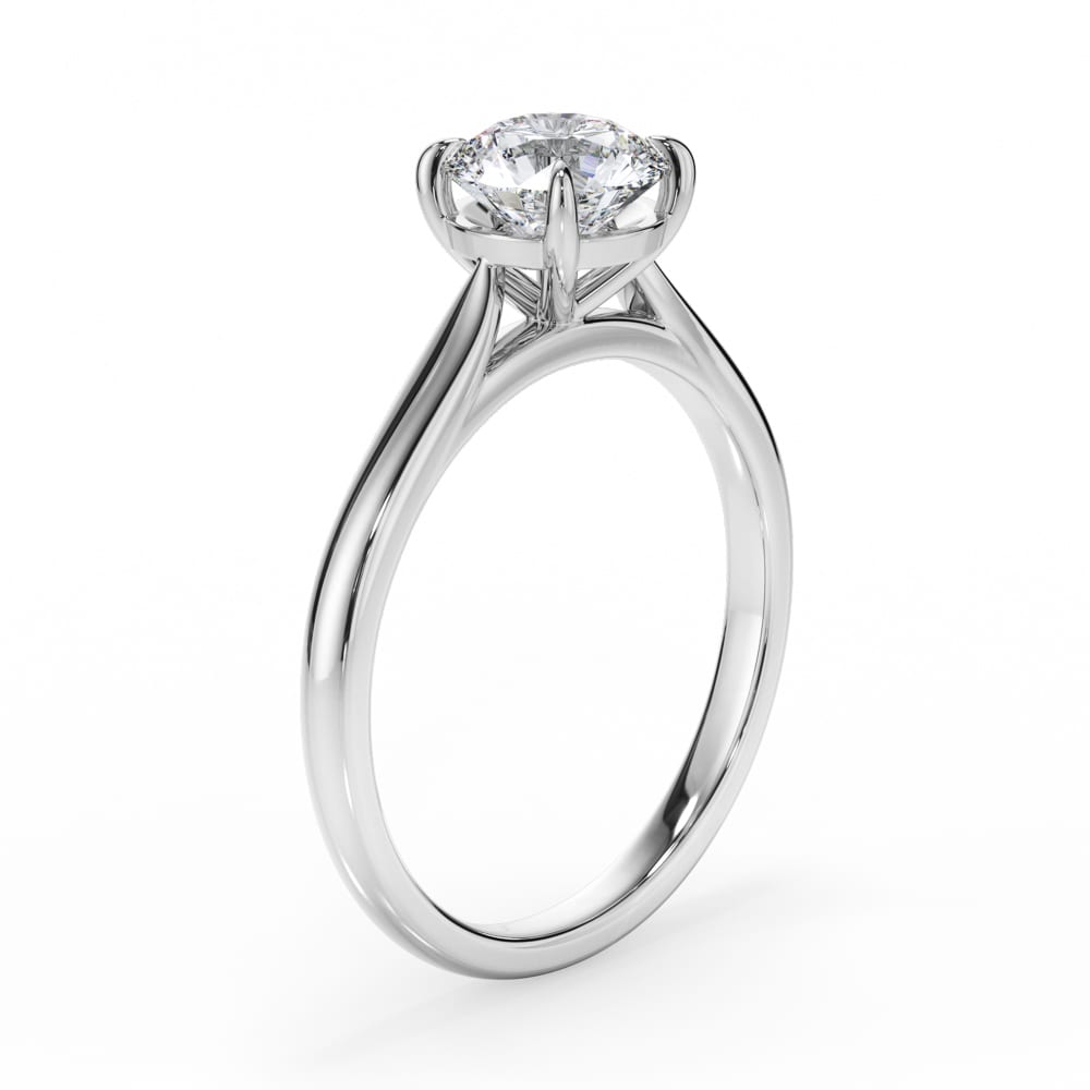 Timeless and refined, this solitaire engagement ring features a brilliant-cut diamond, securely held in a classic four-claw setting. The high-polished band, measuring 2.1mm in width, offers a sleek and elegant foundation, complementing the setting balanced proportions of 6.5mm in height. Expertly crafted by Robert Cliff Master Jewellers.