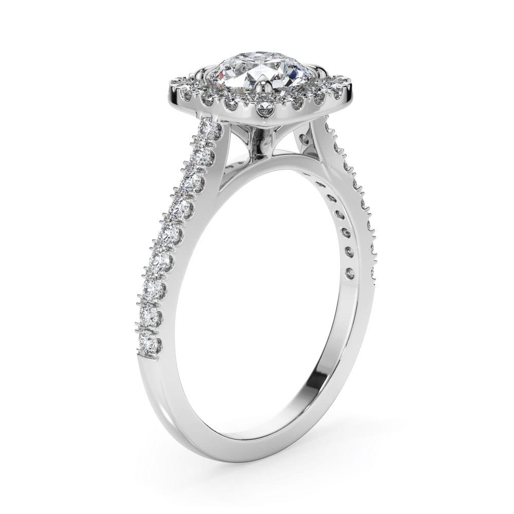 Brilliant Cut Diamond Halo Engagement Ring with Sparkling Accent Band