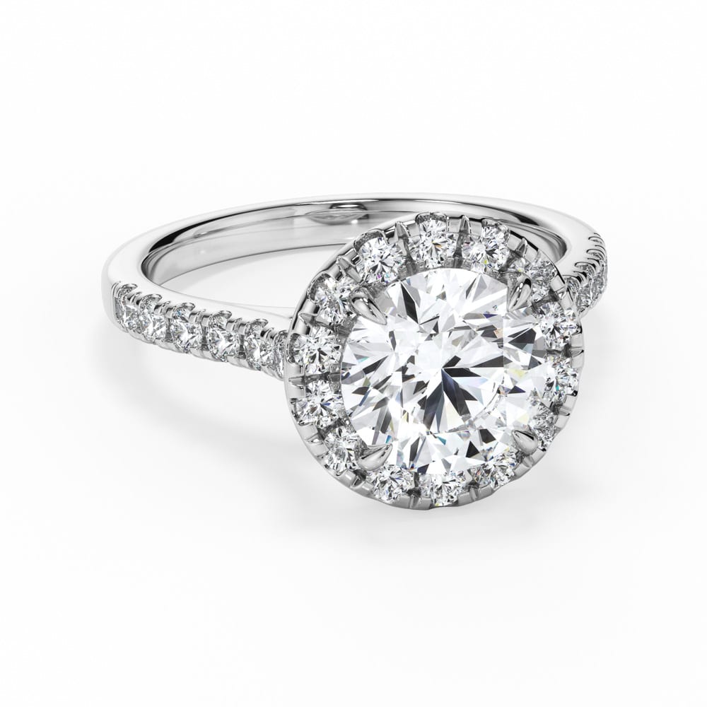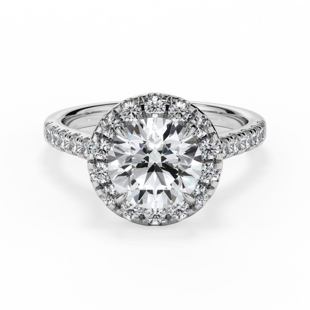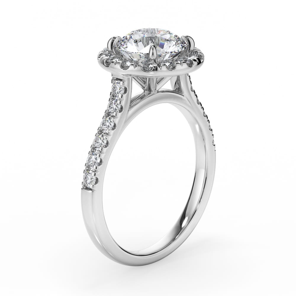 Brilliant Cut Diamond Halo Engagement Ring with Sparkling Accent Band