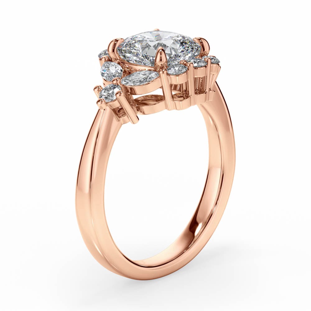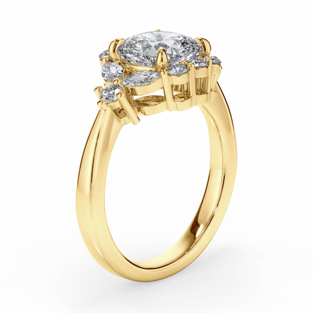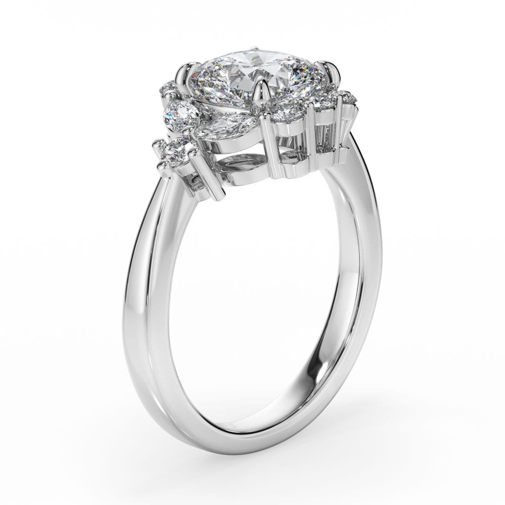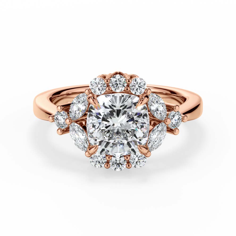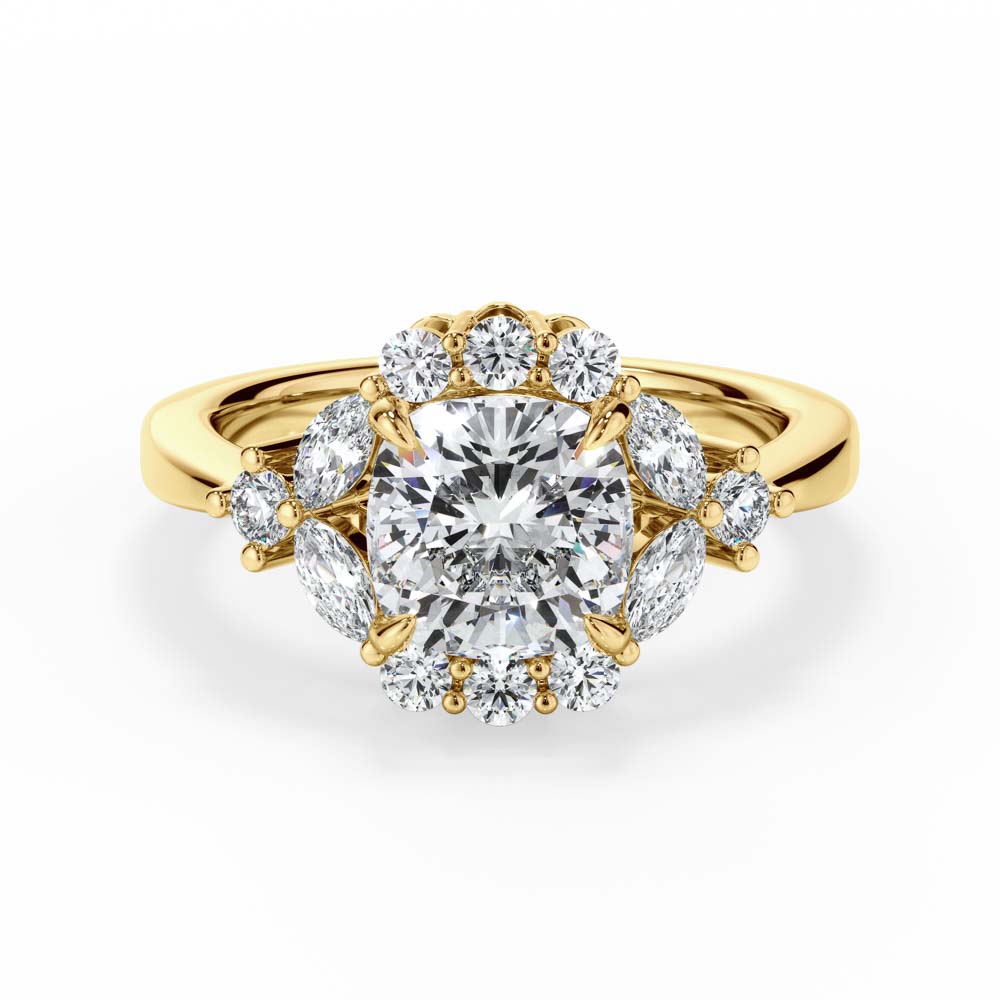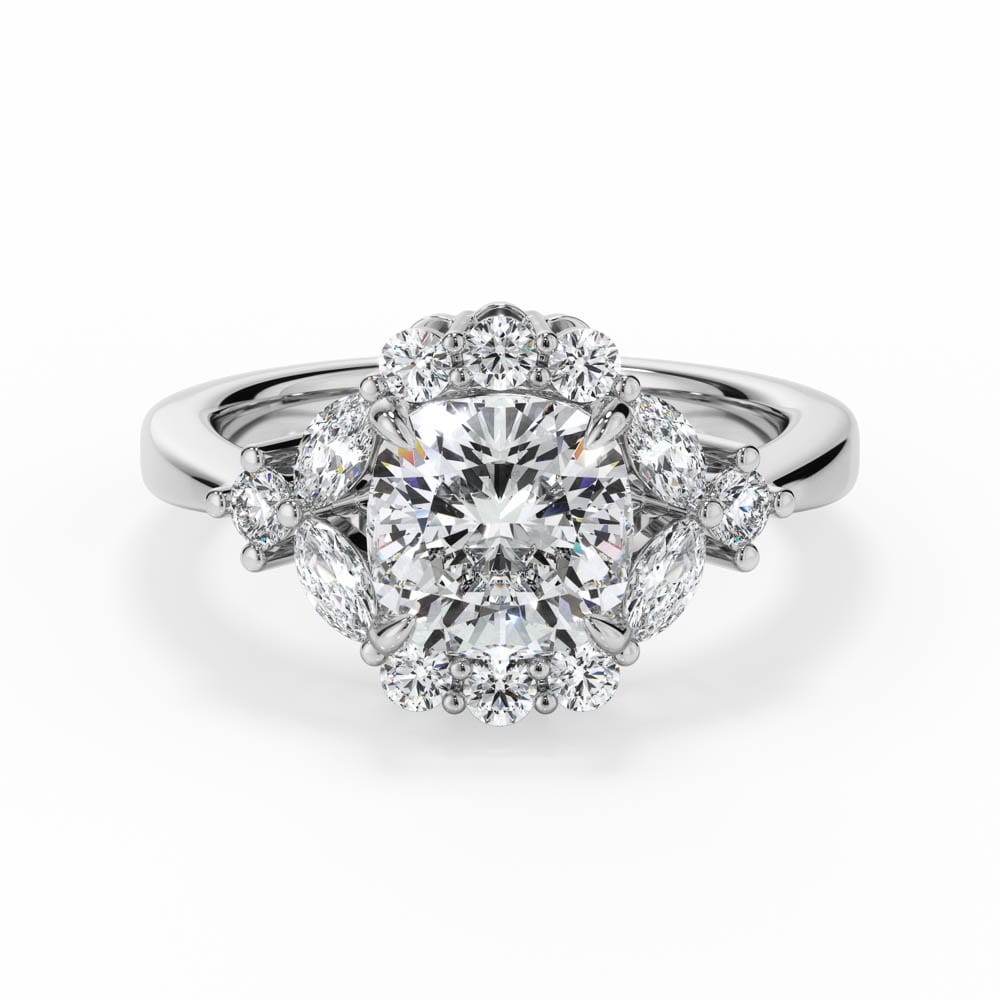 Cushion Cut Halo Ring Adorned with Brilliant and Marquise Cut Diamonds