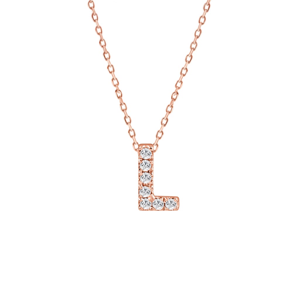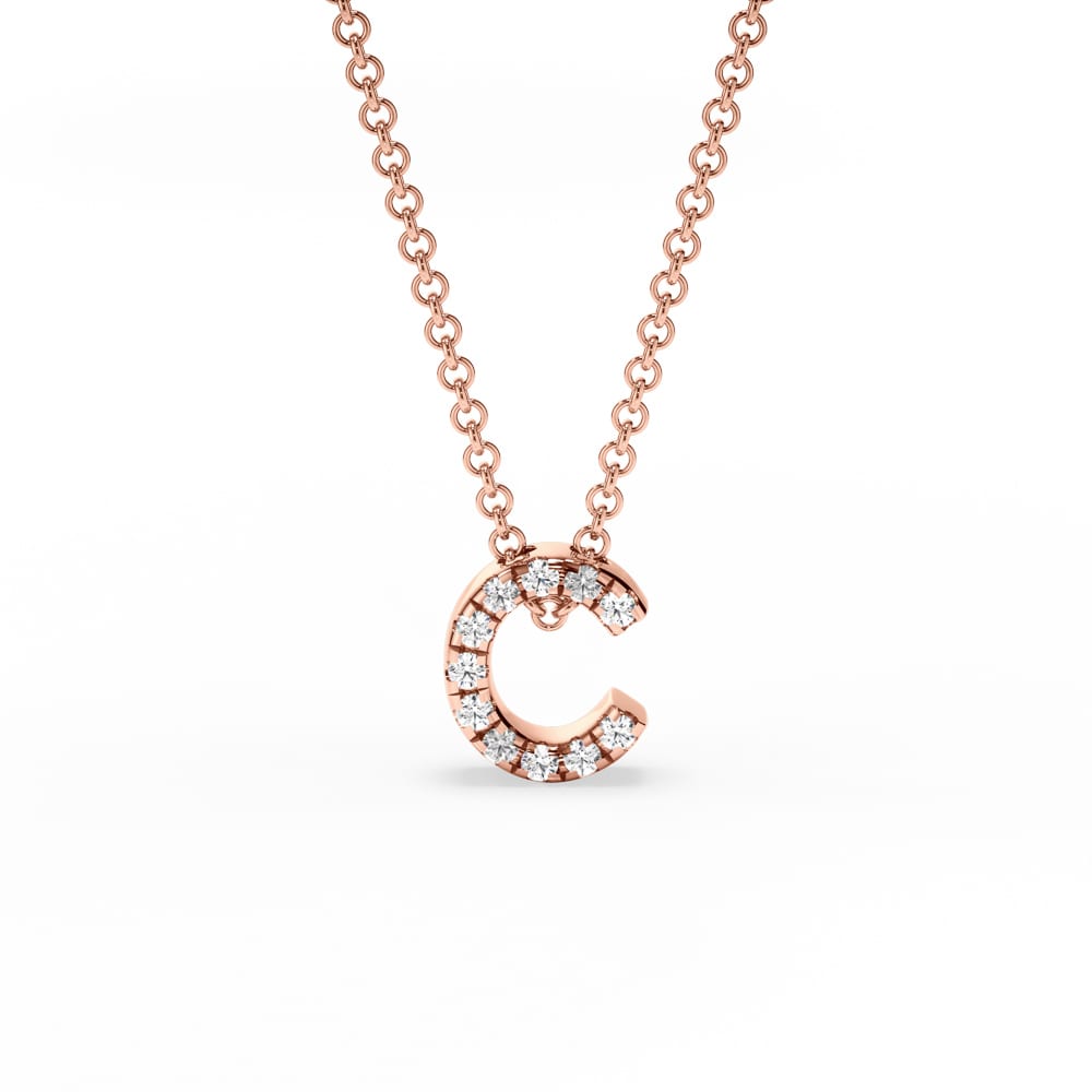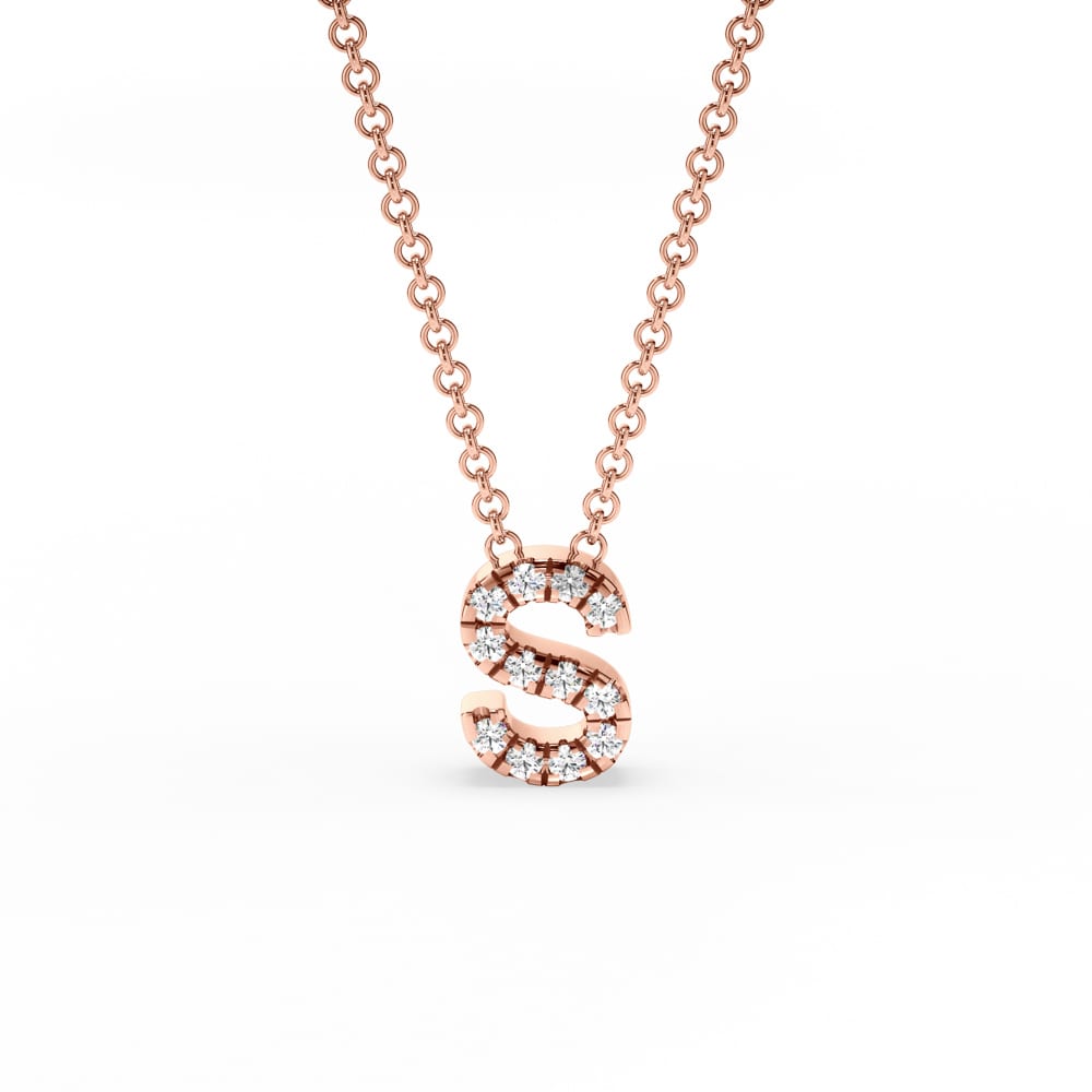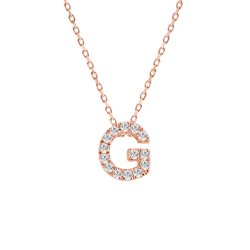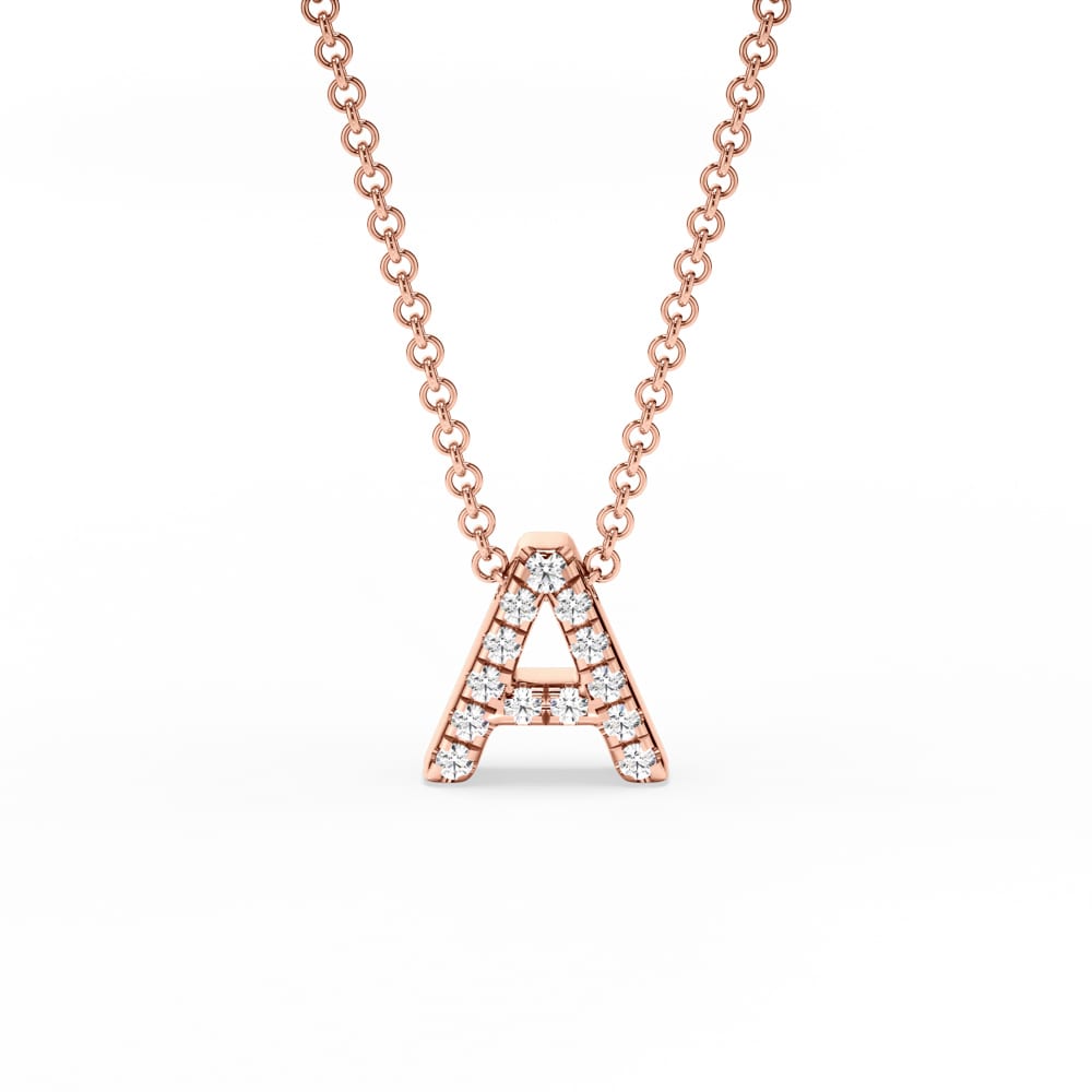 Diamond Initial Pendant in 9ct Rose Gold with Trace Chain – Brilliant Cut Mined Diamonds