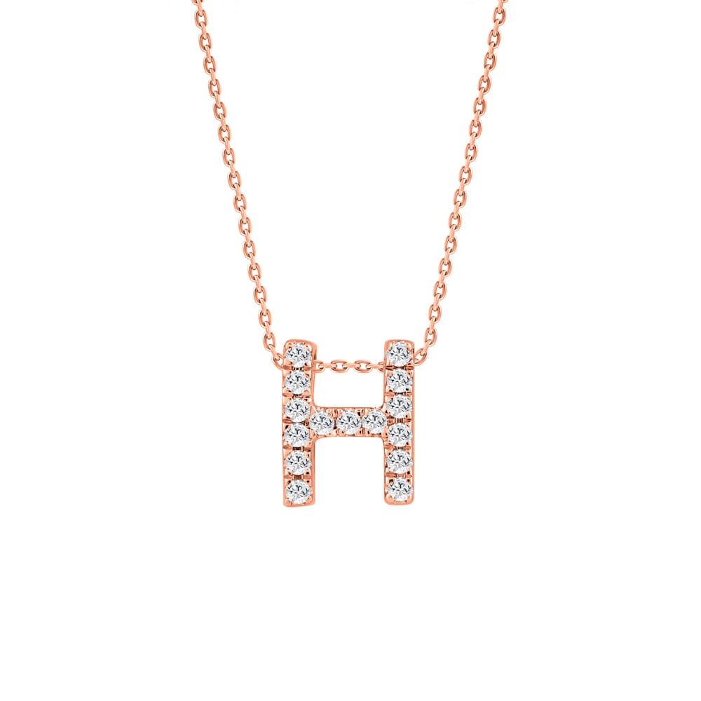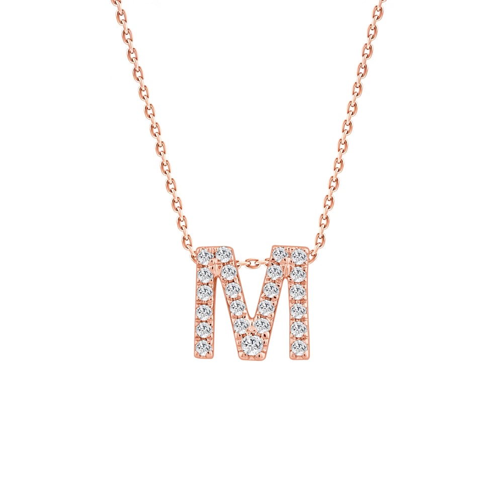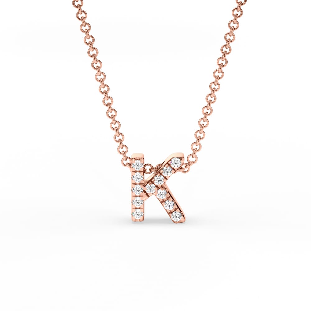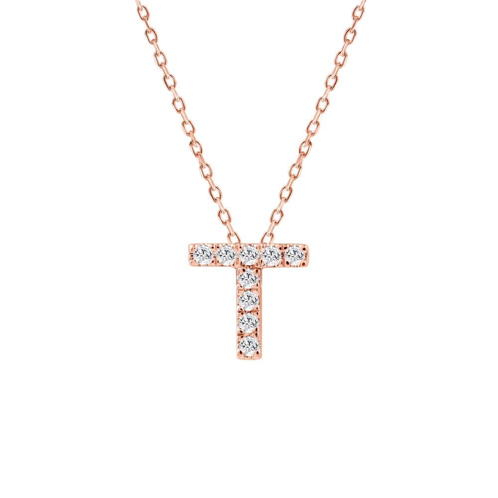 Diamond Initial Pendant in 9ct Rose Gold with Trace Chain – Brilliant Cut Mined Diamonds