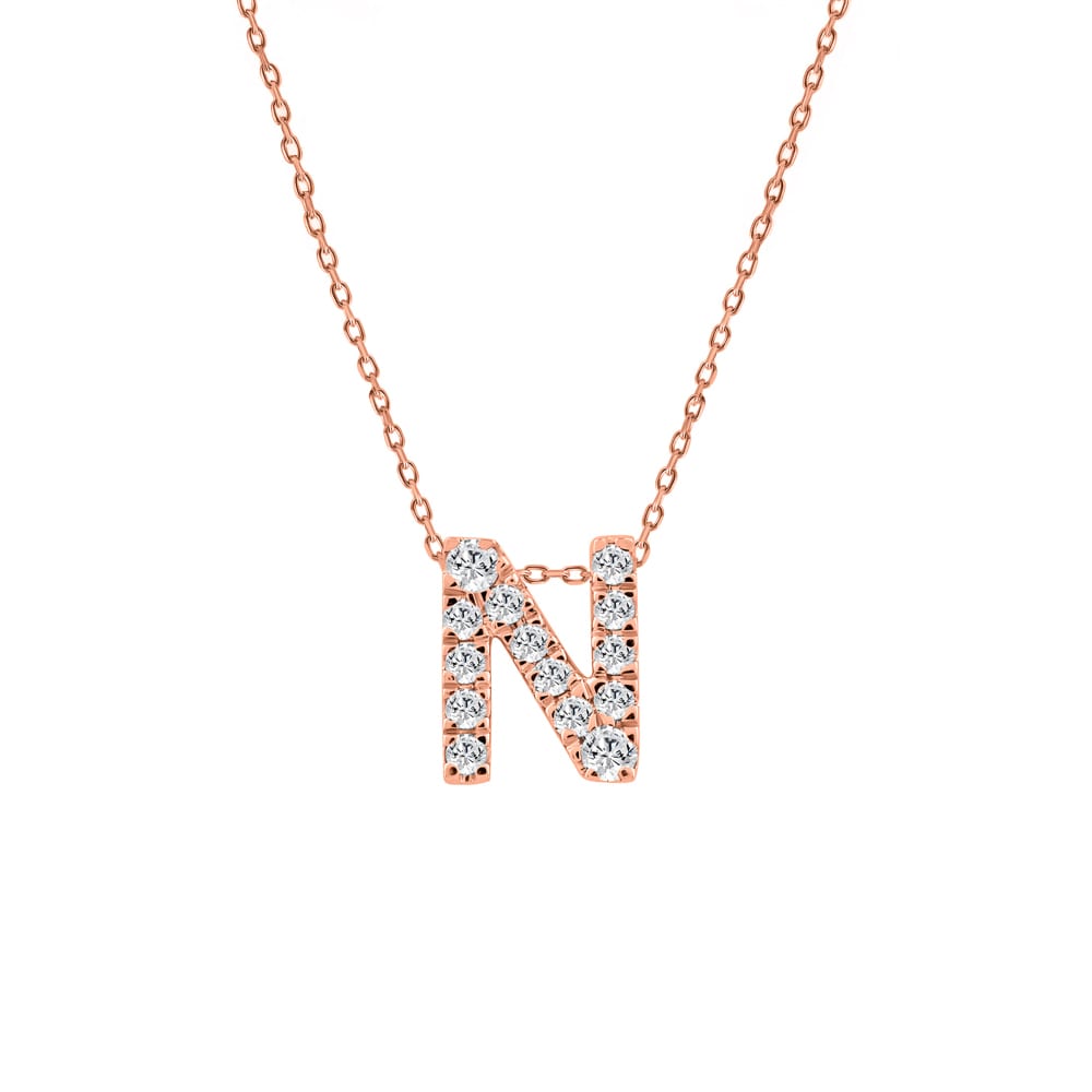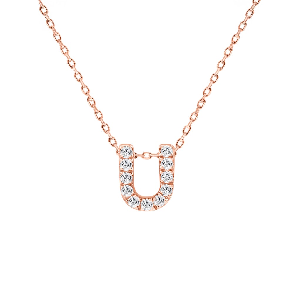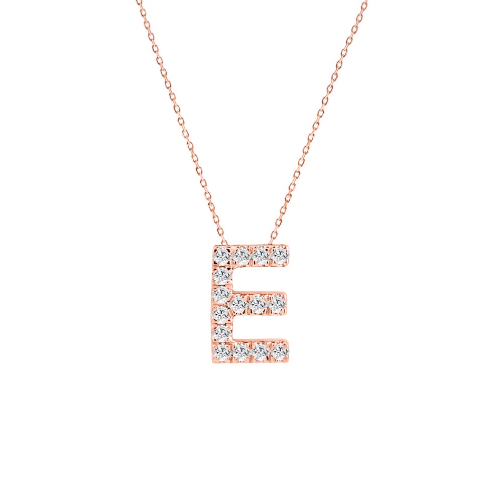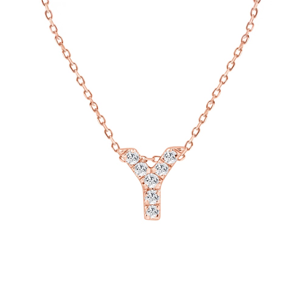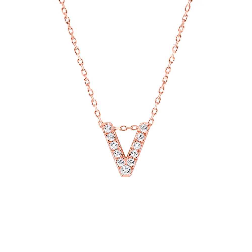 Diamond Initial Pendant in 9ct Rose Gold with Trace Chain – Brilliant Cut Mined Diamonds