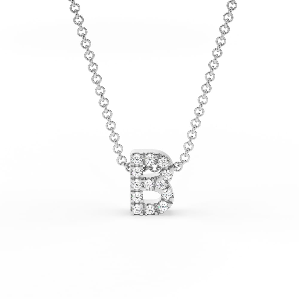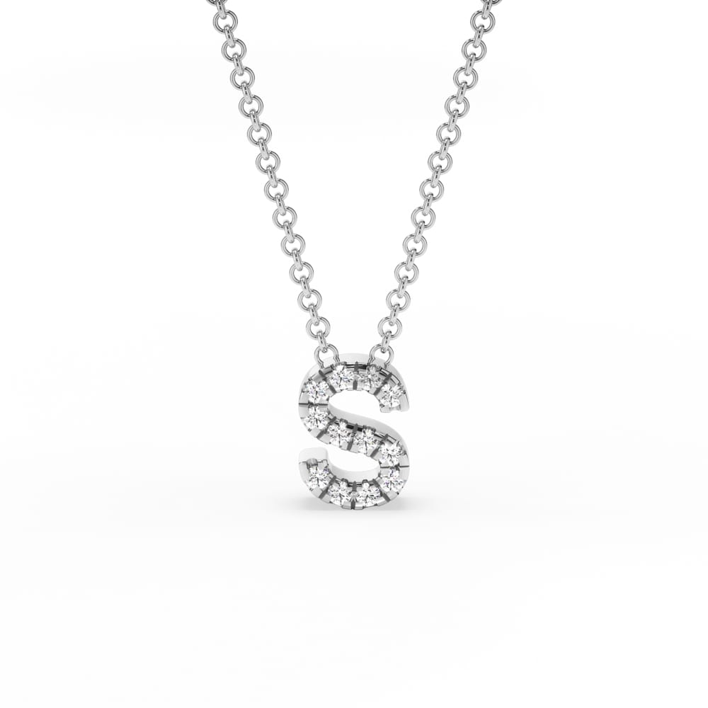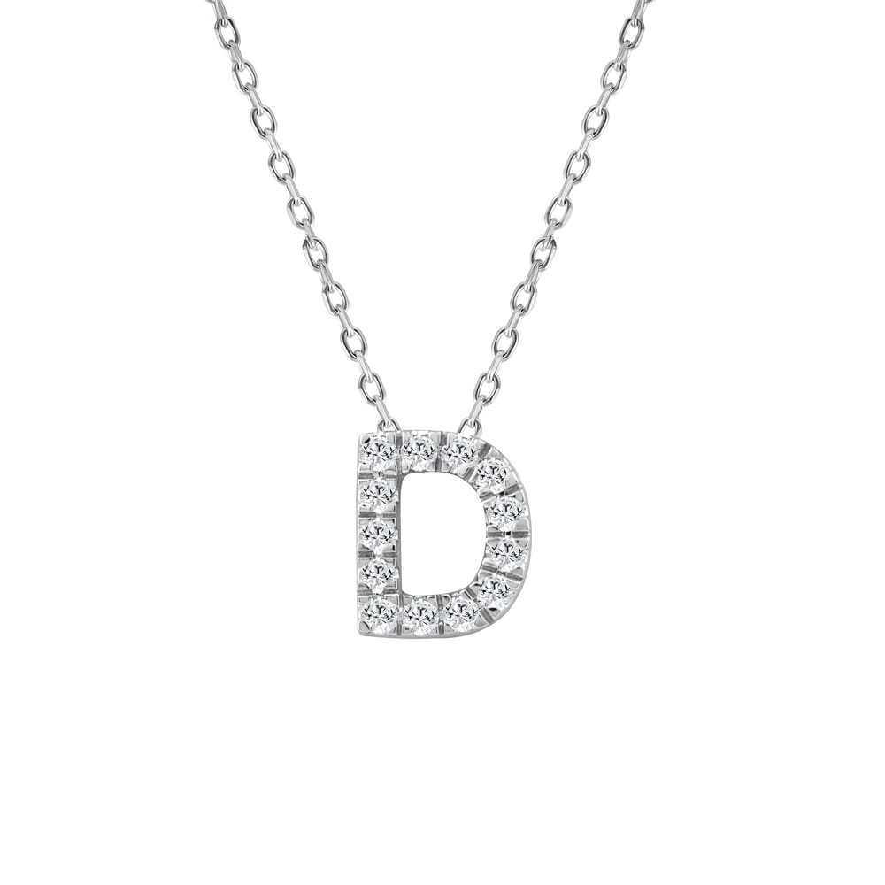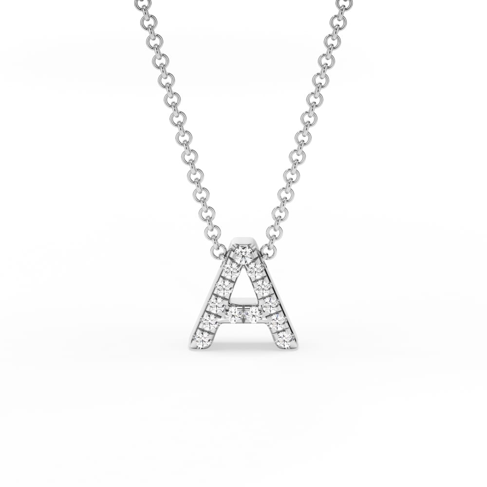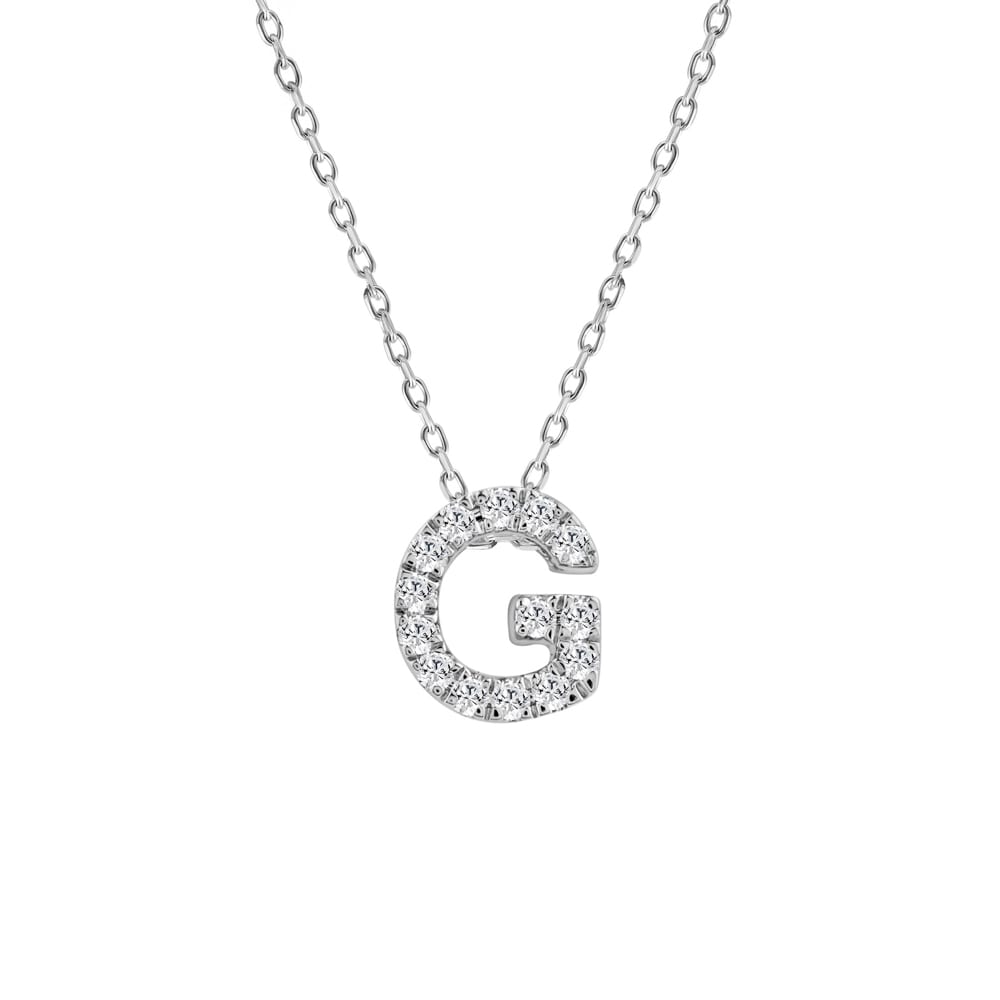 Diamond Initial Pendant in 9ct White Gold with Trace Chain – Brilliant Cut Mined Diamonds