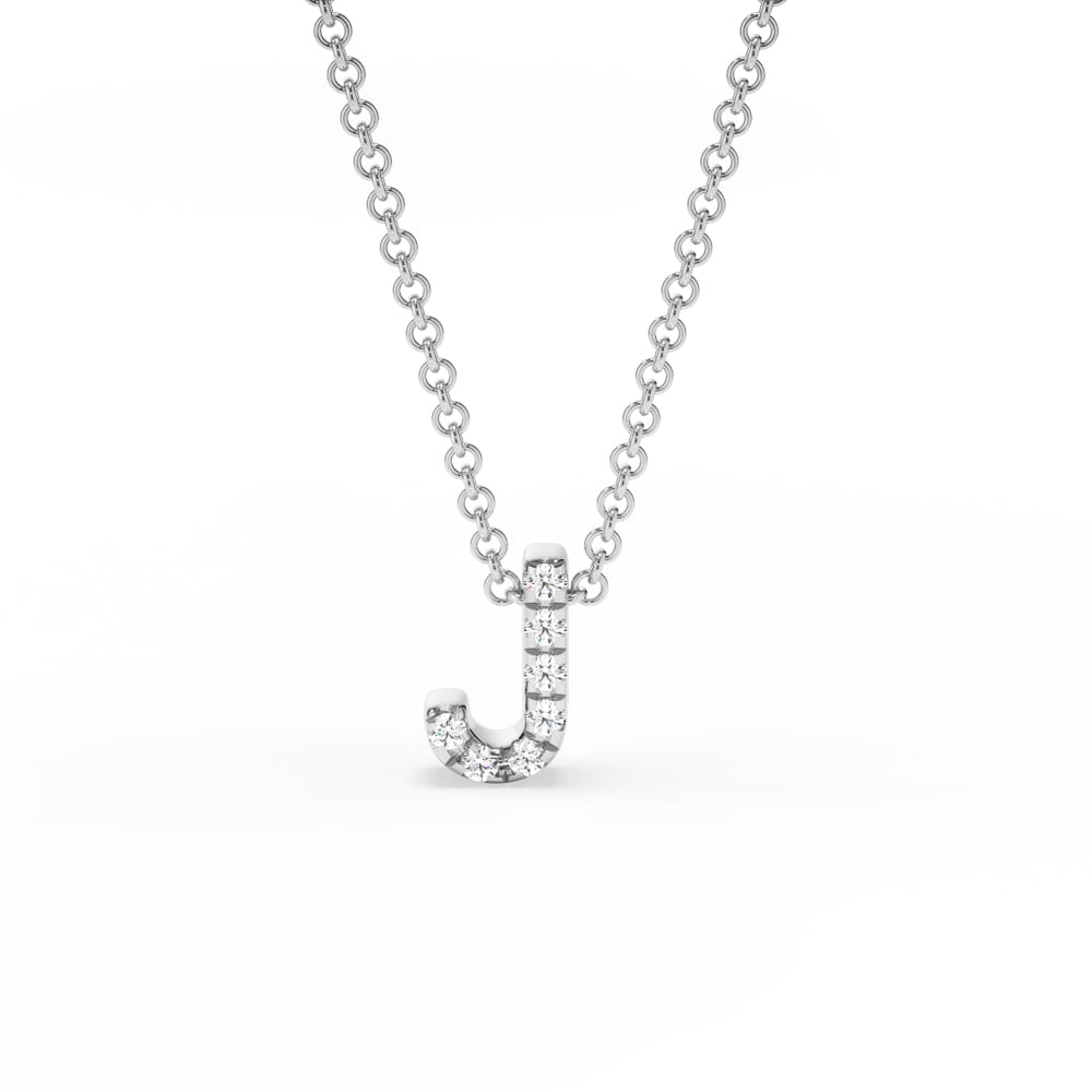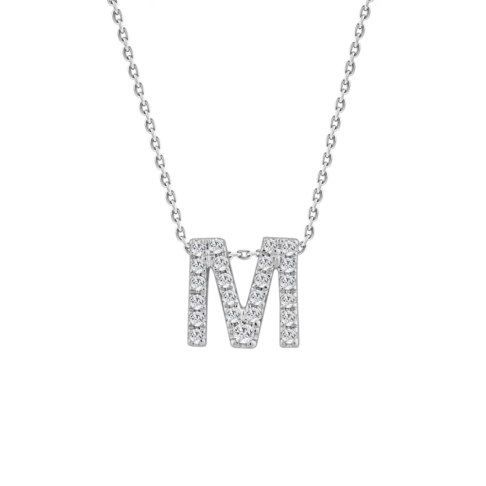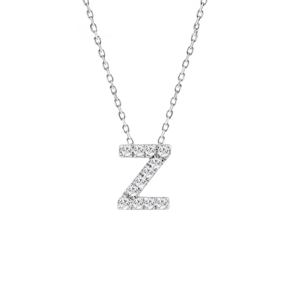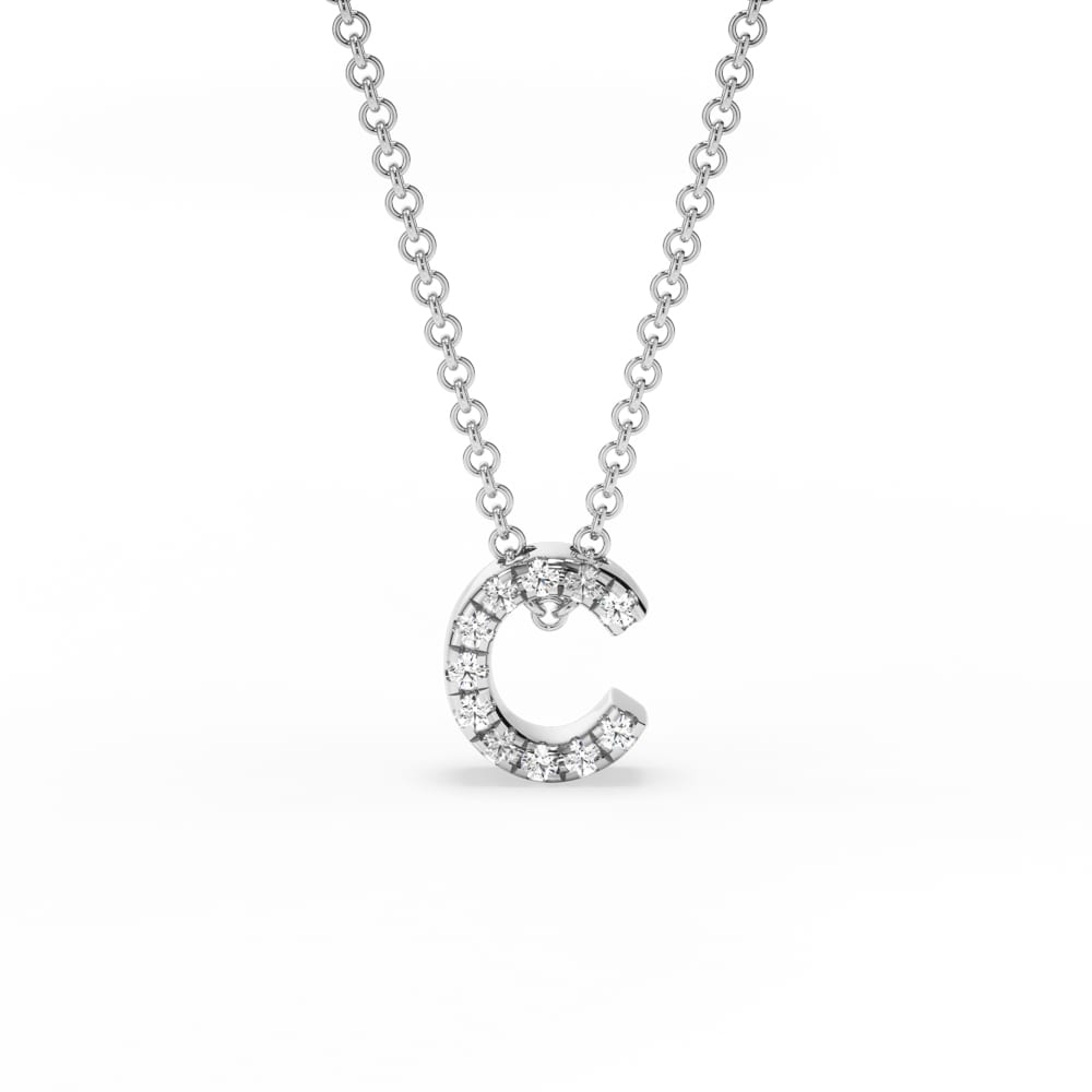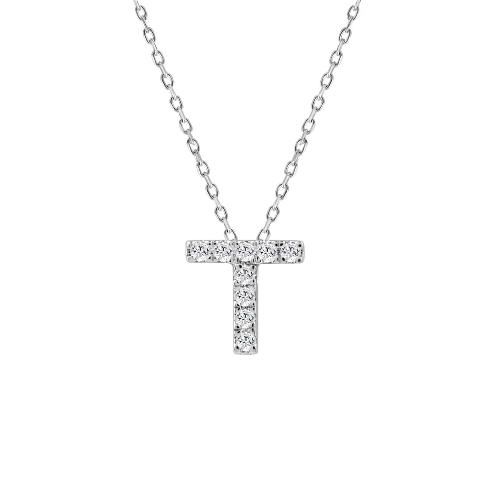 Diamond Initial Pendant in 9ct White Gold with Trace Chain – Brilliant Cut Mined Diamonds