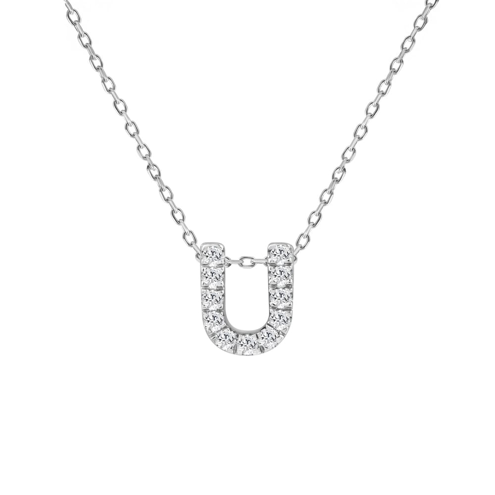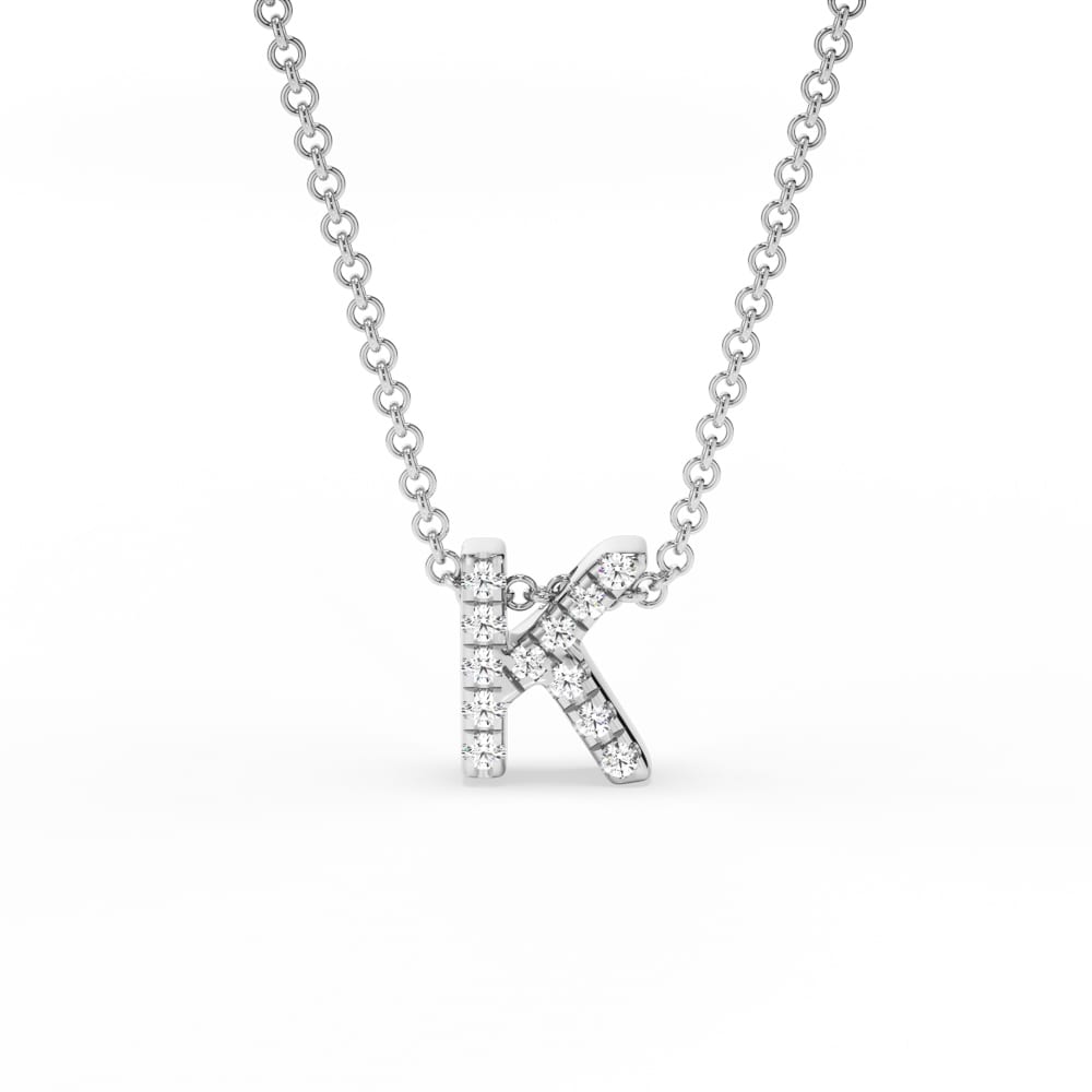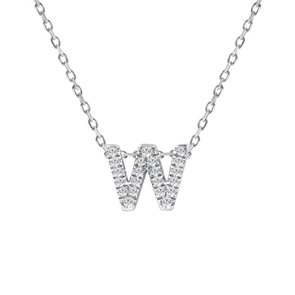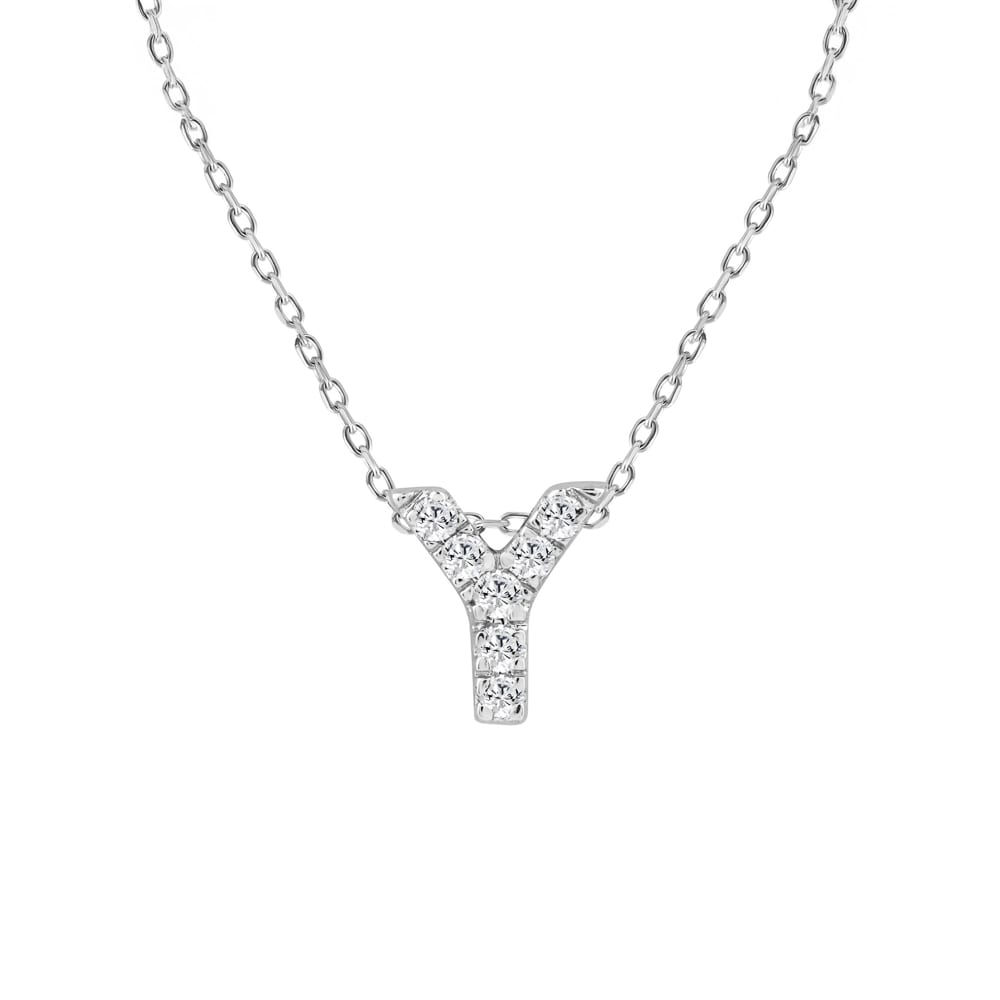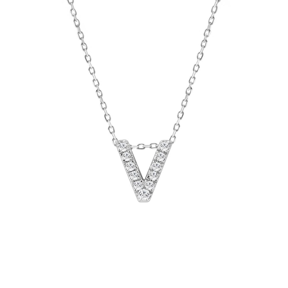 Diamond Initial Pendant in 9ct White Gold with Trace Chain – Brilliant Cut Mined Diamonds