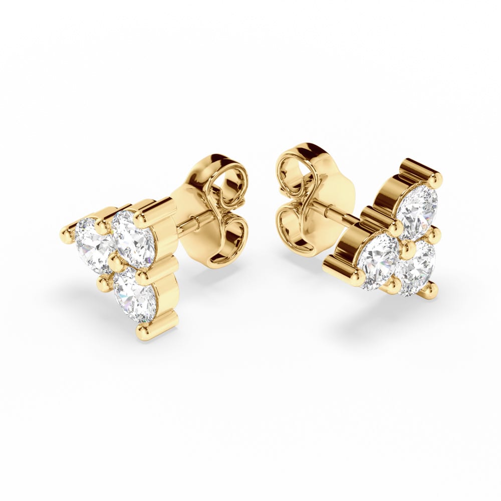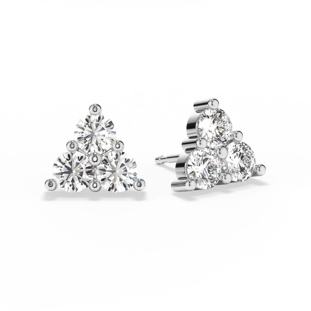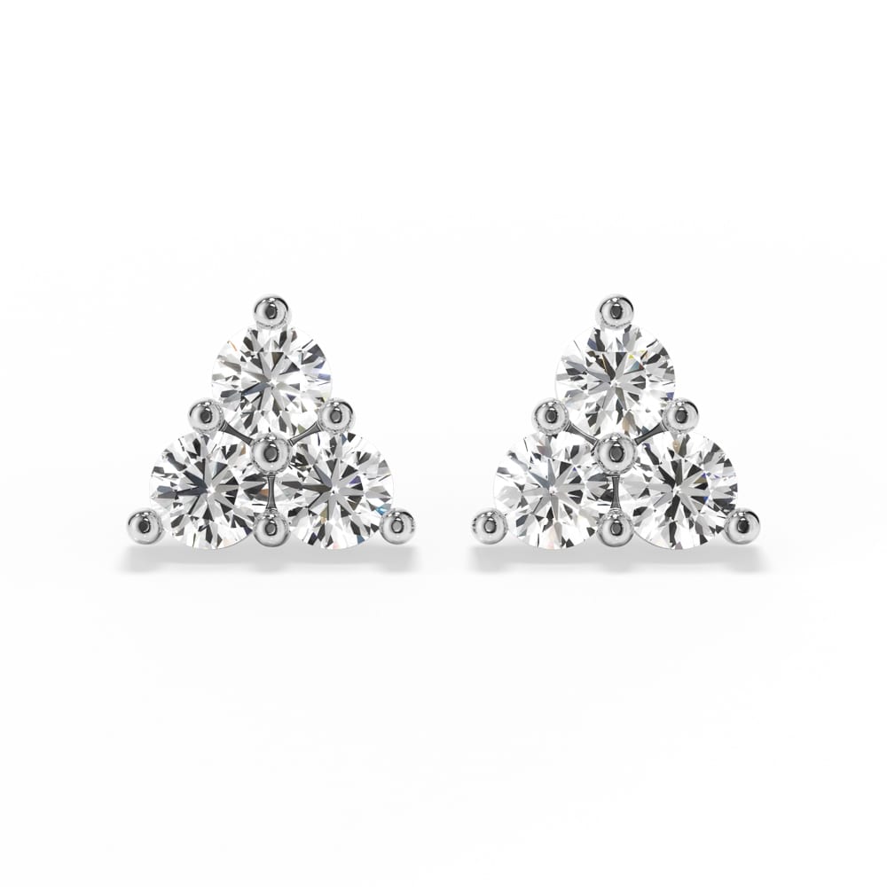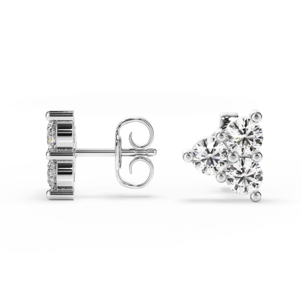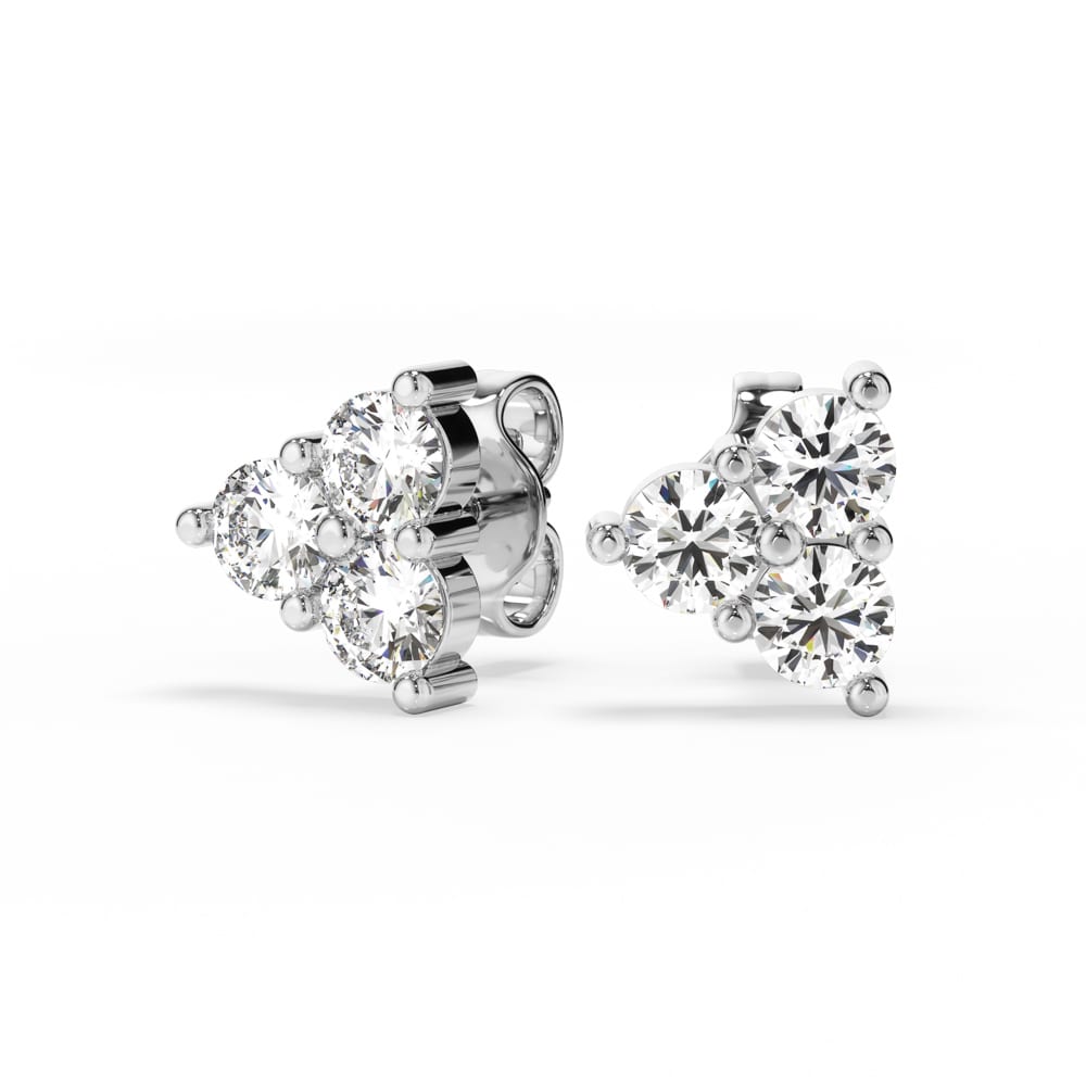 One exquisite pair of diamond stud earrings, secured with classic push-back posts and butterflies for comfortable everyday wear. Each earring features three brilliant cut mined diamonds, artfully shared claw set in a star-like formation to create a delicate sparkle from every angle. Elegantly designed and handcrafted by Robert Cliff Master Jewellers