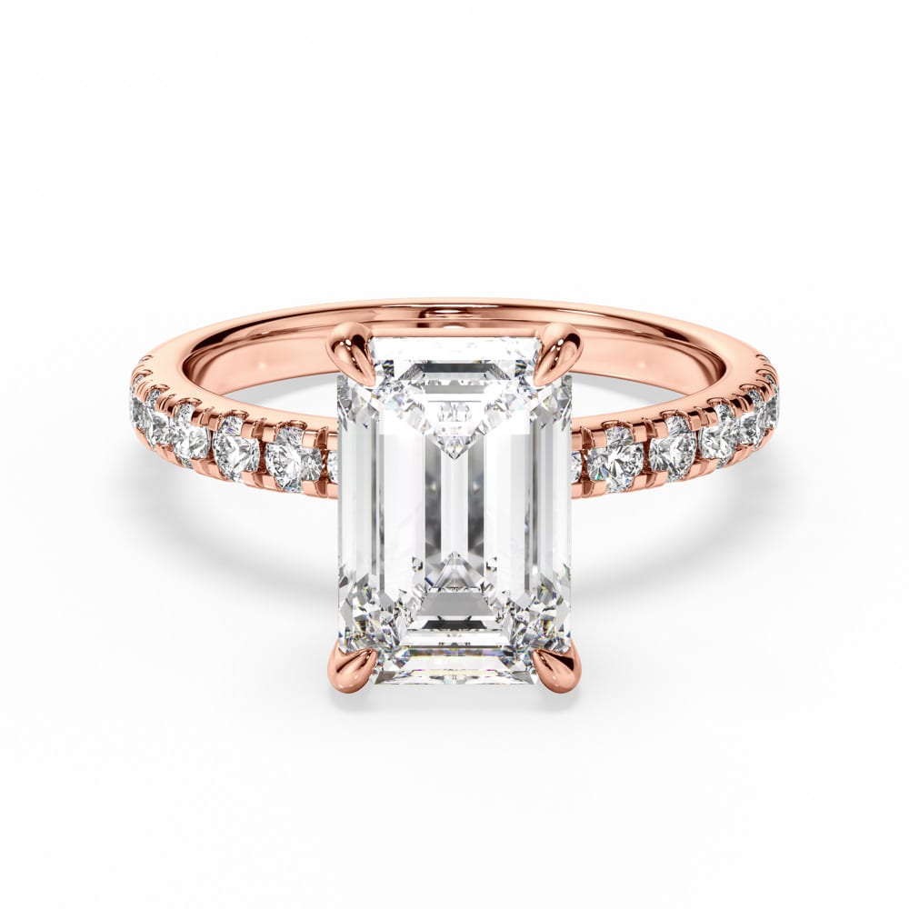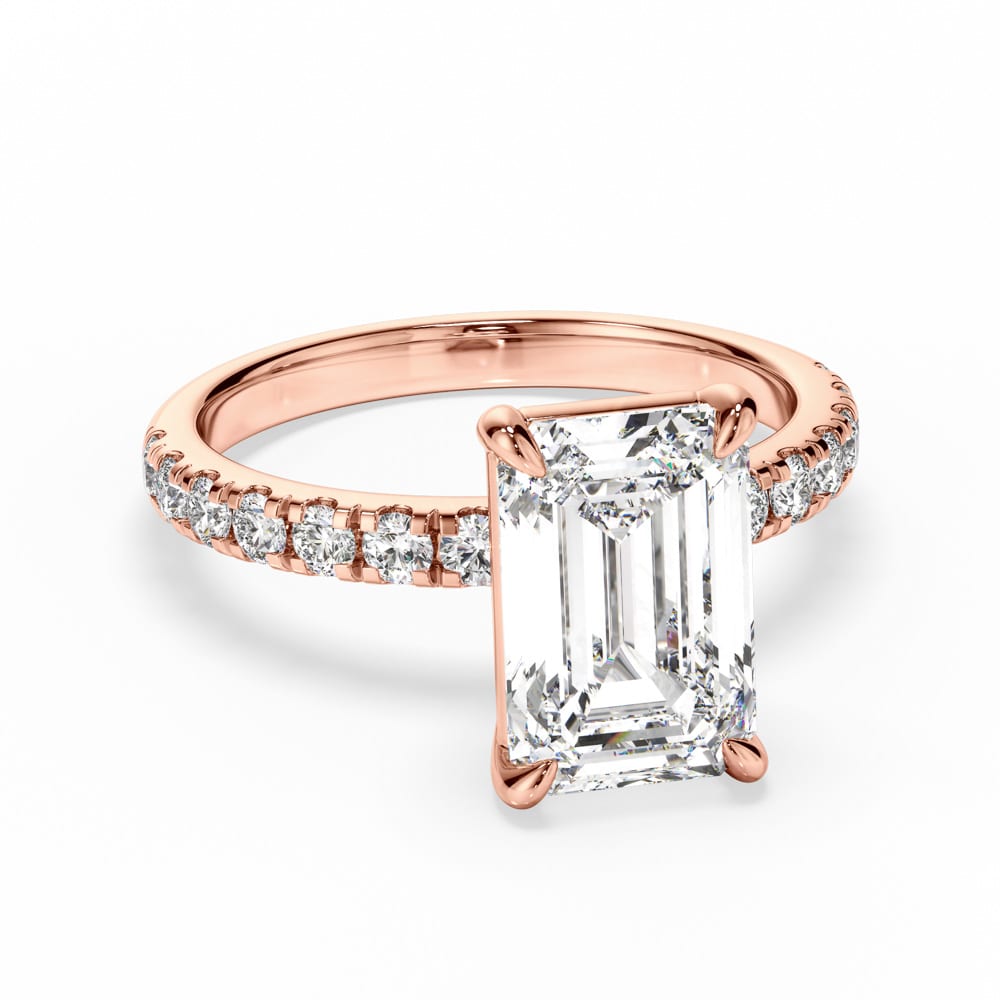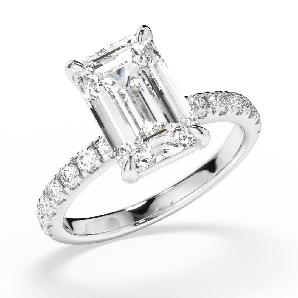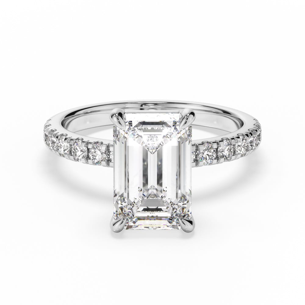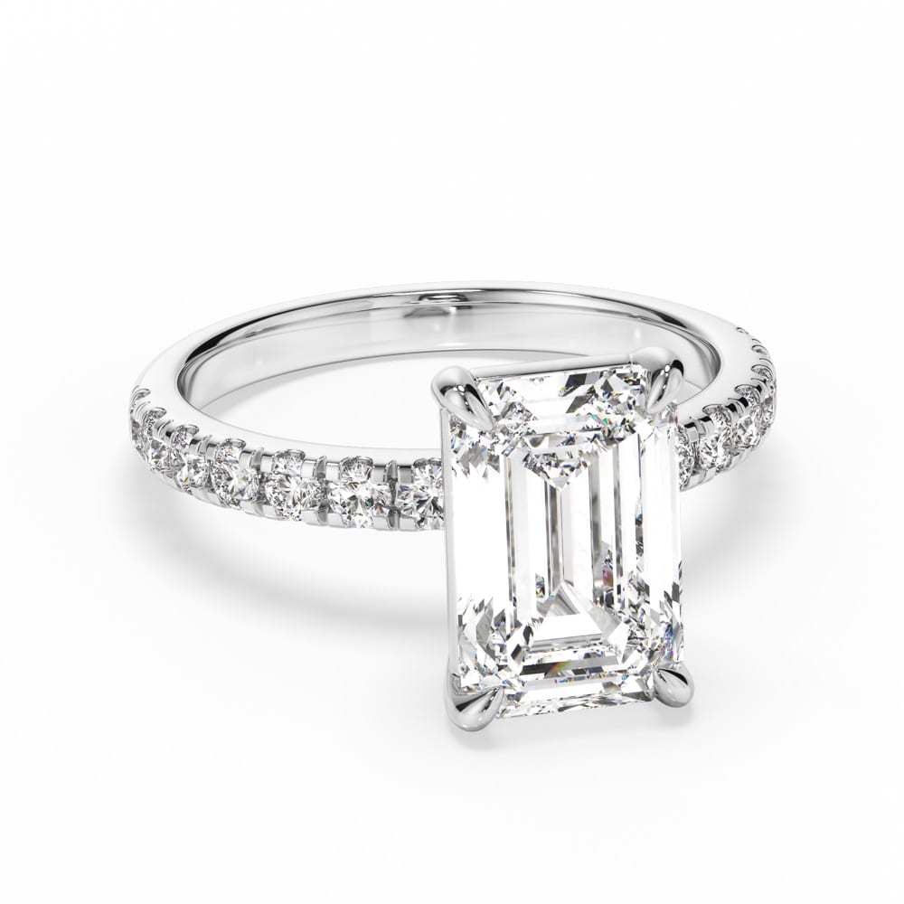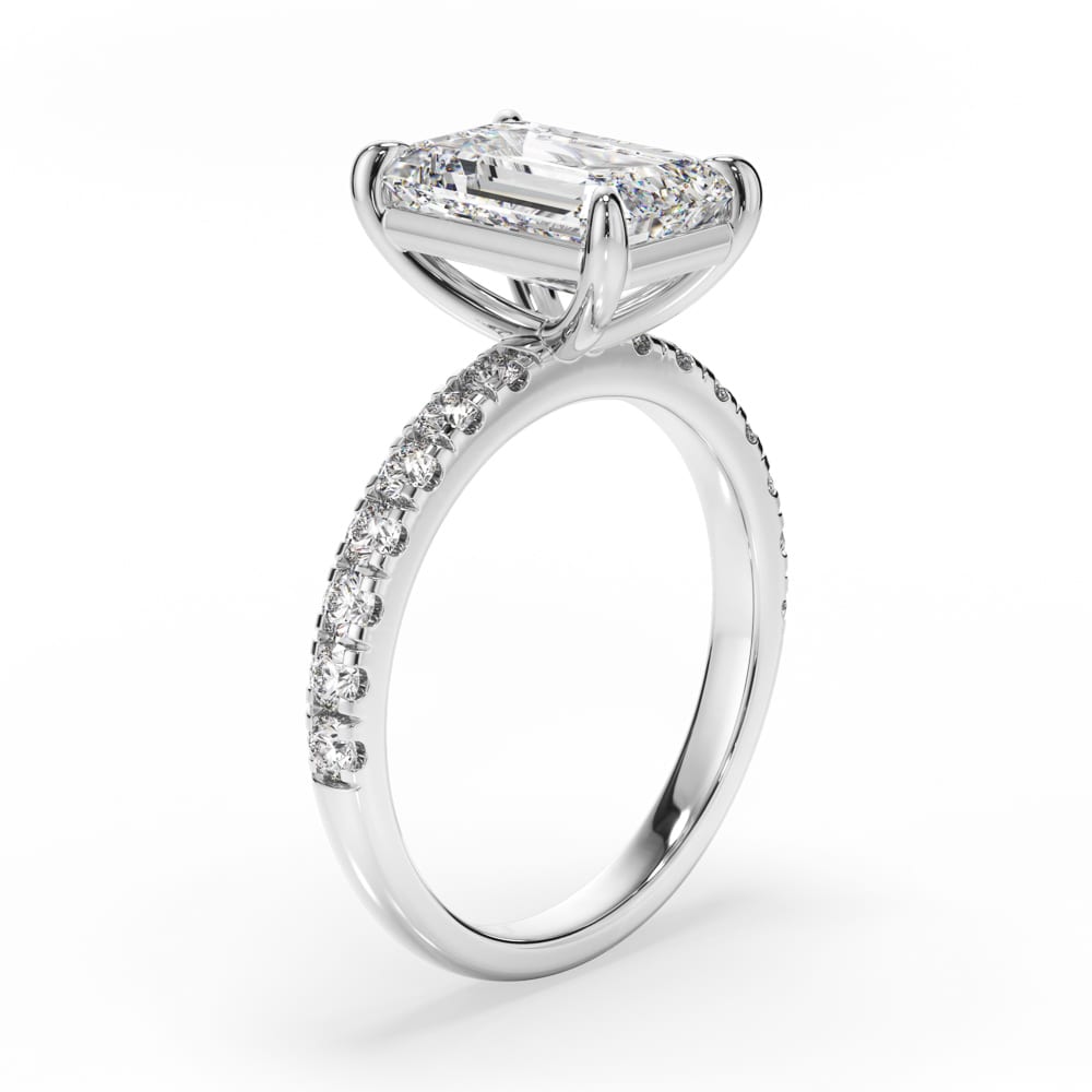 Exquisite Emerald Cut Diamond Engagement Ring with Four-Claw Setting & Accent Diamond Band