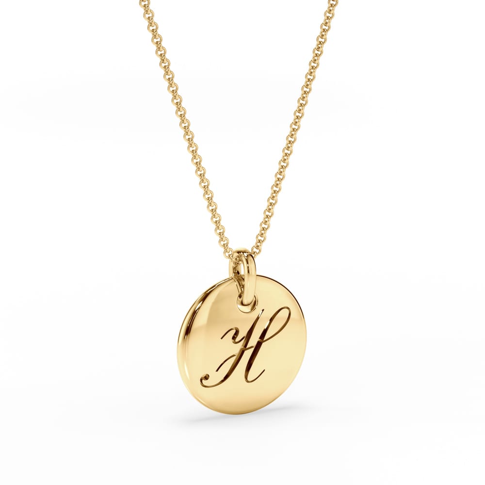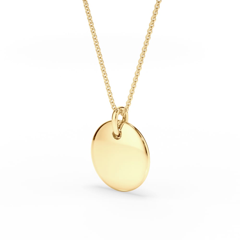 Crafted from 9ct or 18ct gold, this elegant circle disc measures 12.60mm in diameter with a high polish finish. The disc can be left plain for a minimalist look or personalised with an engraving of your choice. Paired with a delicate 9ct/18ct yellow gold trace chain, 45cm in length, this timeless piece offers both versatility and sophistication.