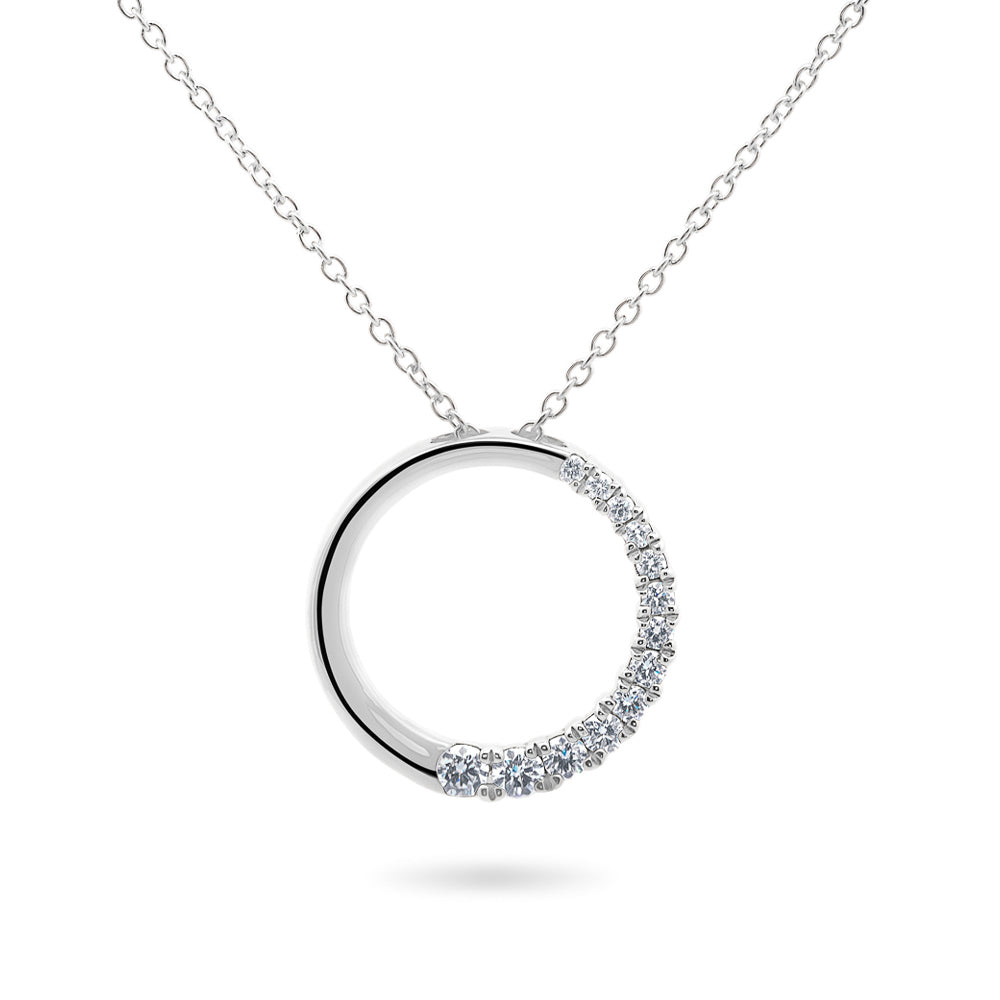 Half-Set Diamond Circle Necklace in White Gold
