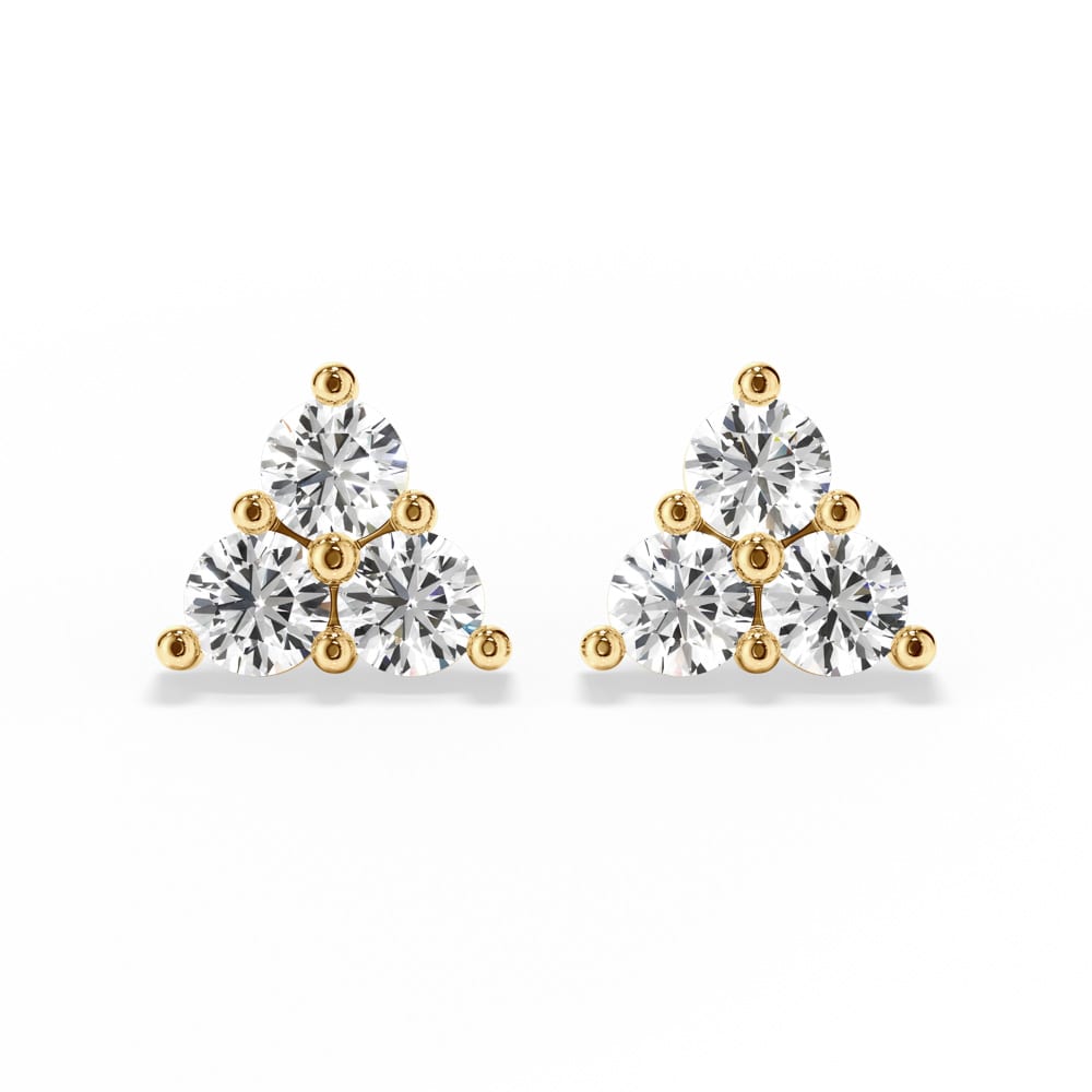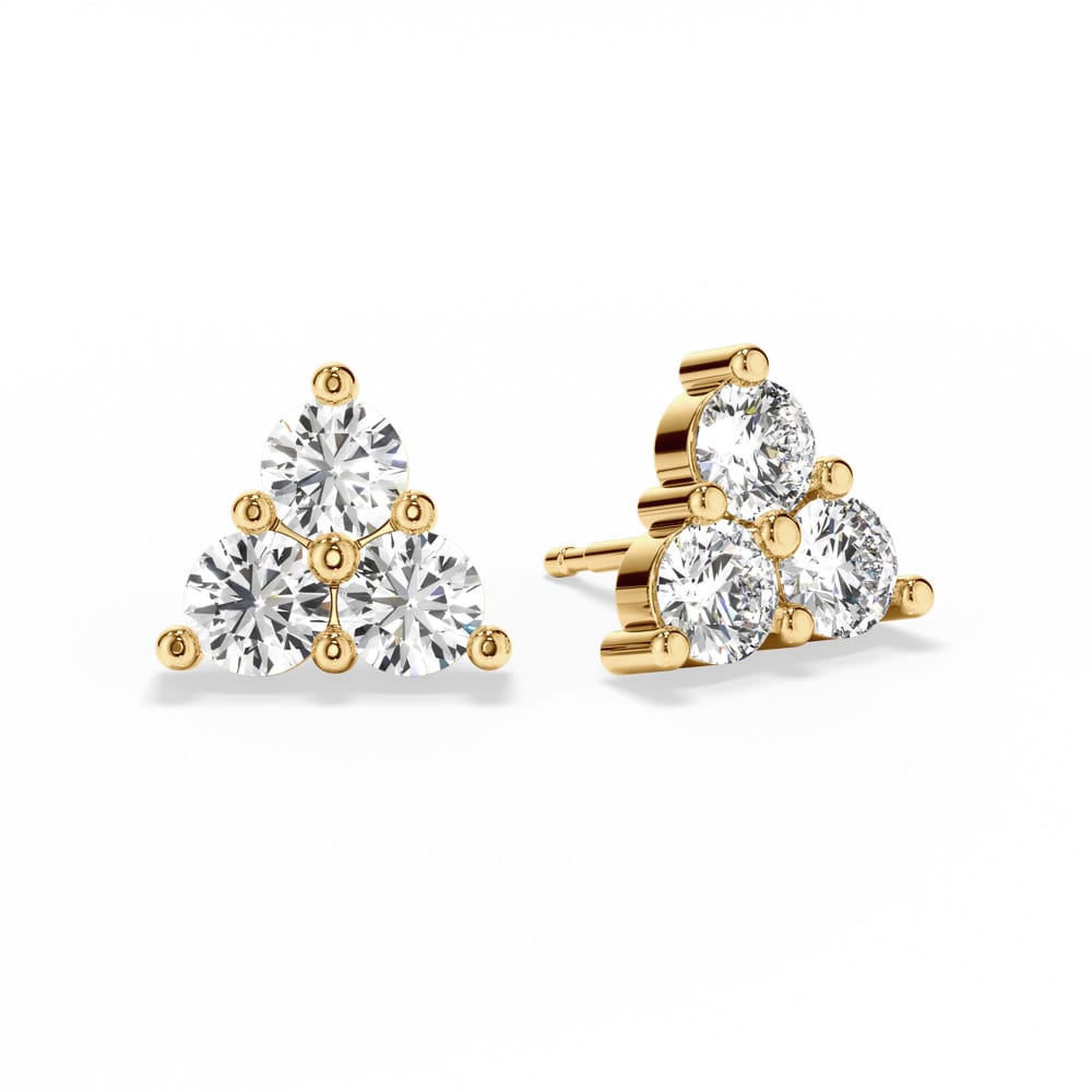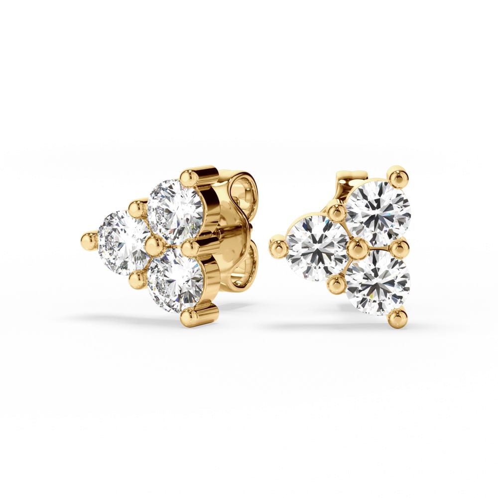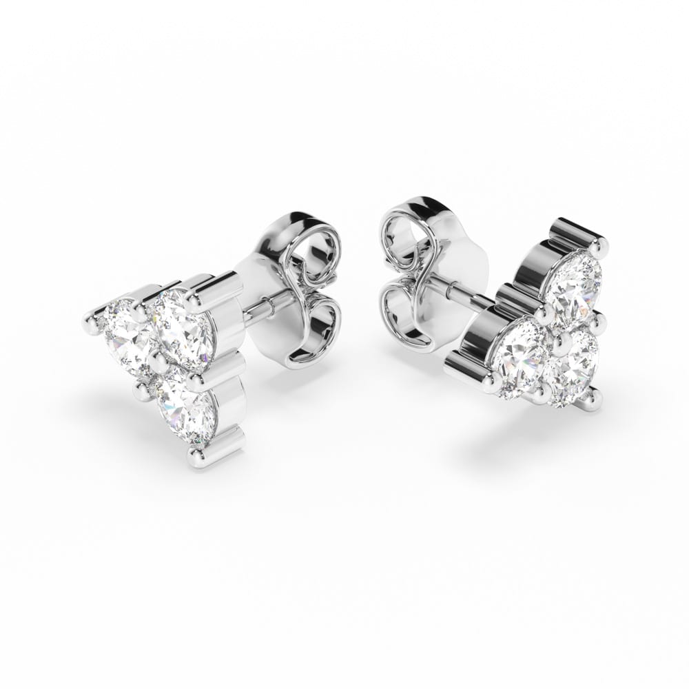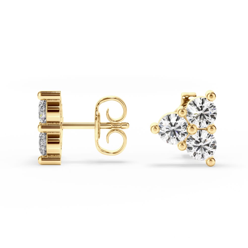 One exquisite pair of diamond stud earrings, secured with classic push-back posts and butterflies for comfortable everyday wear. Each earring features three brilliant cut lab grown diamonds, artfully shared claw set in a star-like formation to create a delicate sparkle from every angle. Elegantly designed and handcrafted by Robert Cliff Master Jewellers