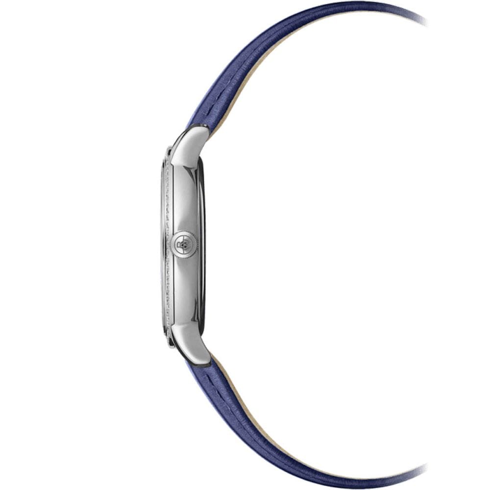 Exuding timeless sophistication, the Toccata Ladies’ 29mm watch is adorned with 76 dazzling diamonds on its sleek stainless steel case. The silver lacquered sunray satin-finished dial, featuring applied Roman numeral indexes and a railway-track chapter ring, ensures both refinement and readability. Complemented by a luxurious blue satin strap, this quartz-powered timepiece reflects RAYMOND WEIL’s dedication to Swiss craftsmanship and artistic heritage. A modern classic, the Toccata collection celebrates grace, precision, and enduring beauty—a perfect statement of elegance.