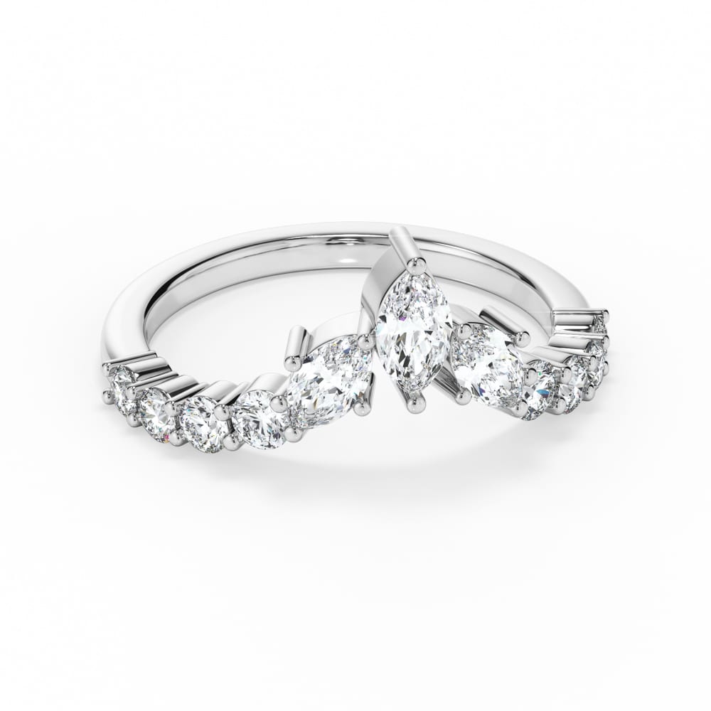 Luxurious Curved Diamond Wedding Band – Marquise and Brilliant Cut