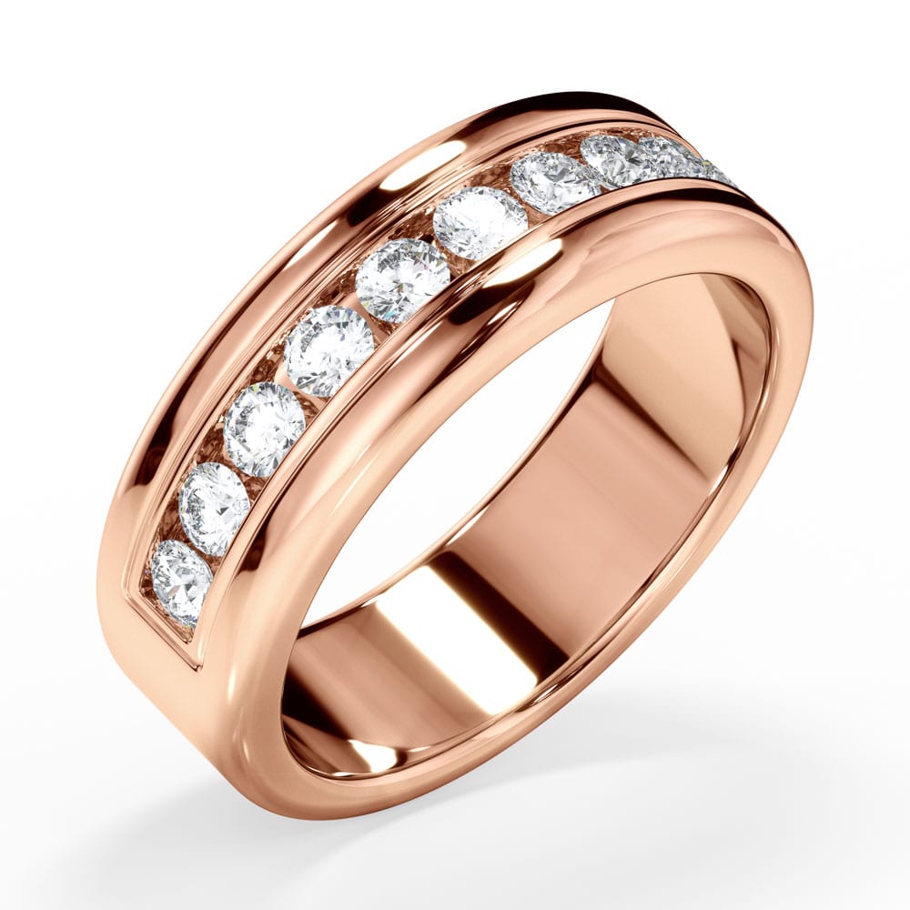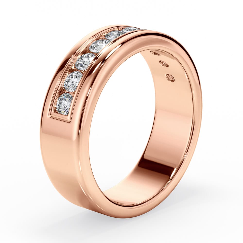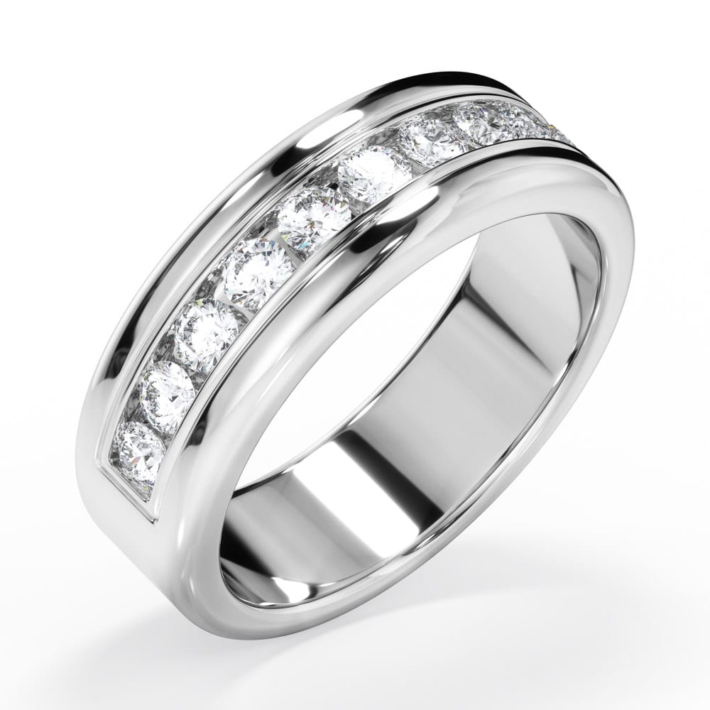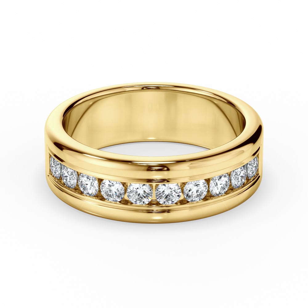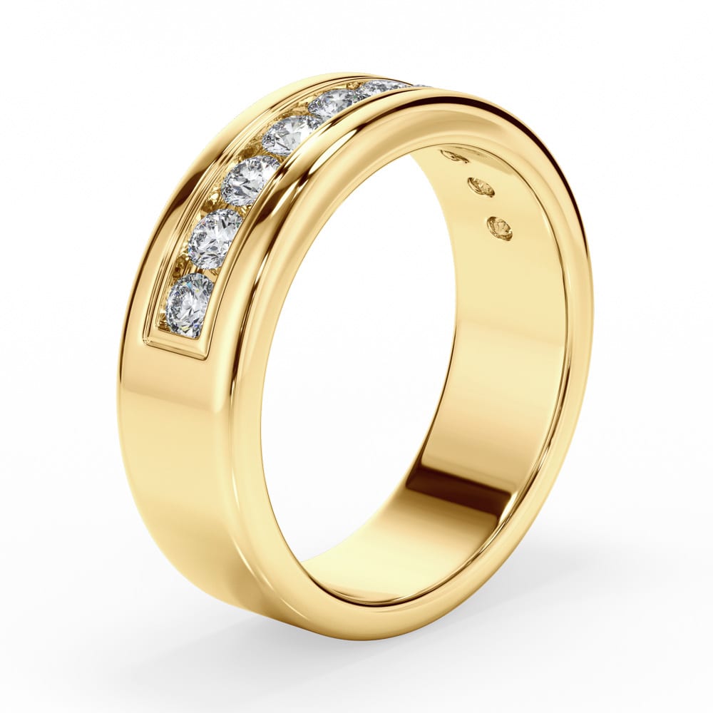 Introducing our 18ct gold men’s diamond ring, measuring 7.00mm wide and 1.80mm thick. Ten brilliant cut diamonds, channel-set across the top, offer a bold yet refined sparkle with a total weight of 0.77ct. Crafted for a comfort fit, the band features a high-polished finish that enhances its sleek, modern appeal.