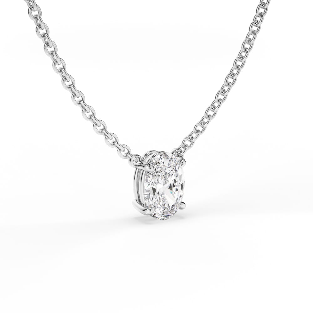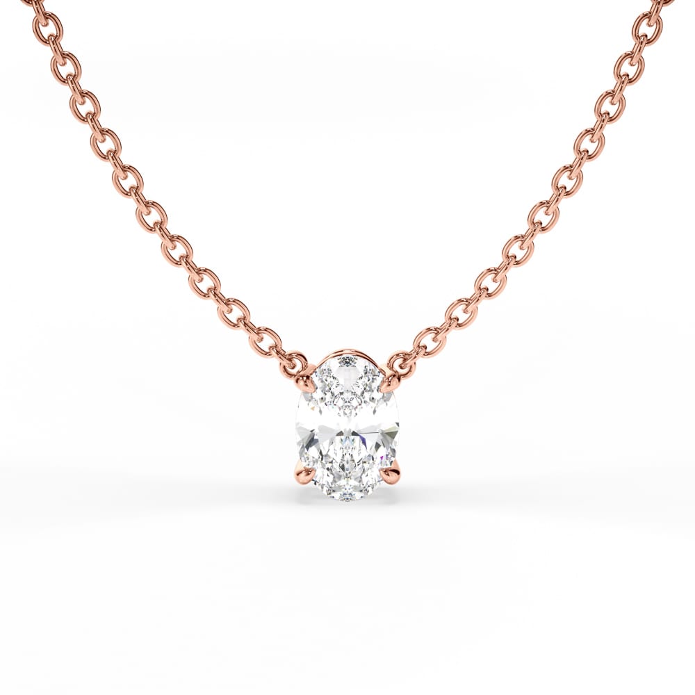 North-South Set Pendant - 18ct Gold Four-Claw Oval Diamond Necklace