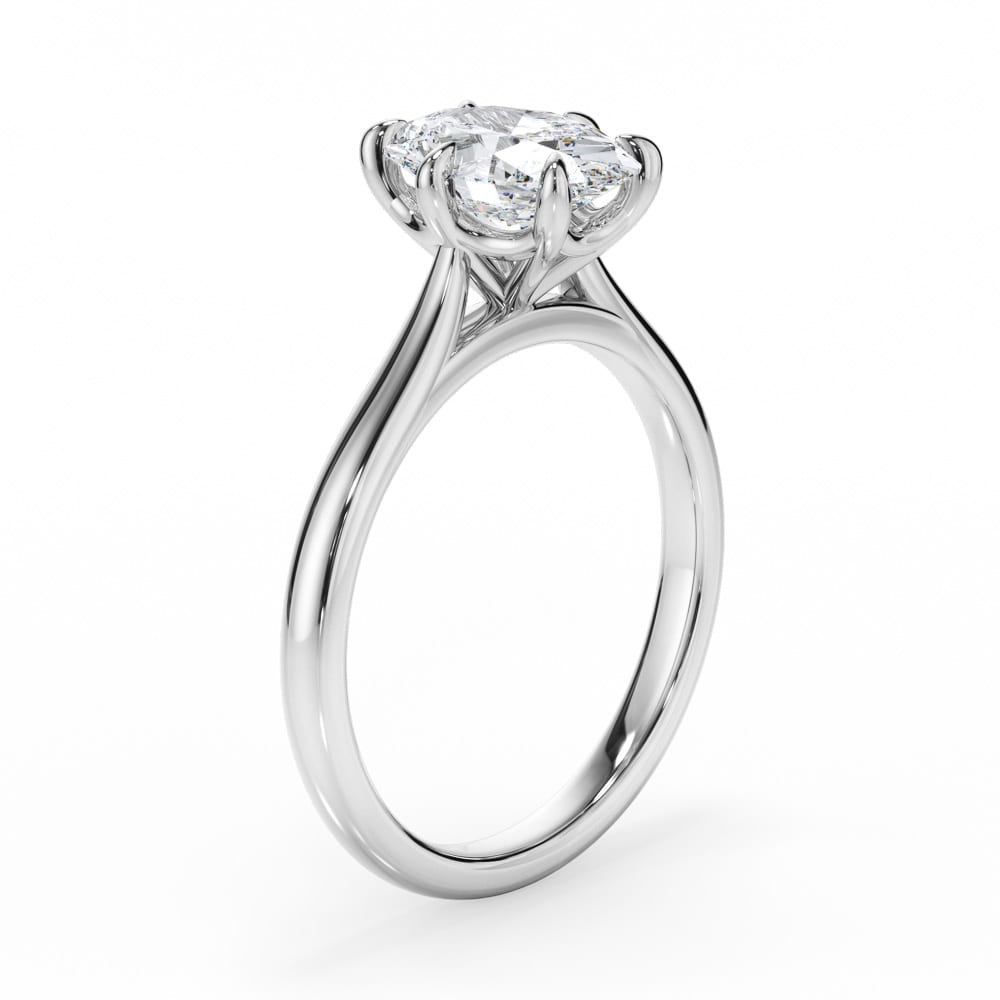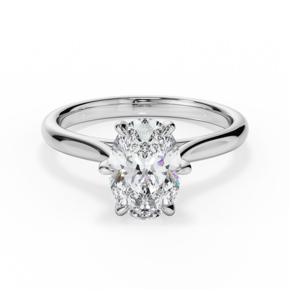 Oval Cut Diamond Engagement Ring with Classic six-Claw Setting and Smooth Rounded Band