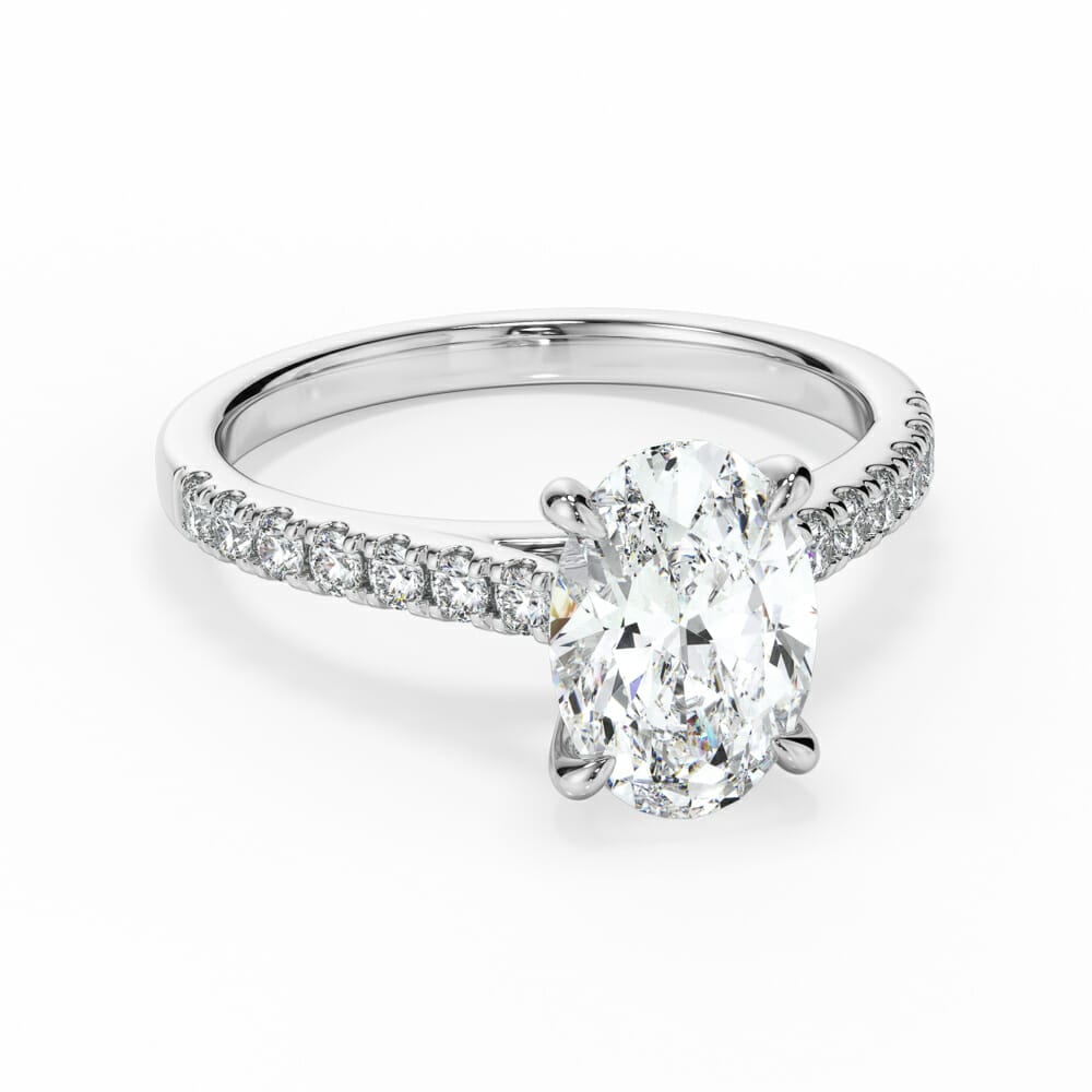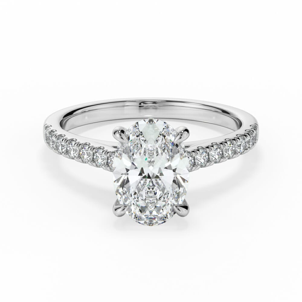 Oval Cut Diamond Engagement Ring with Diamond Accent Band