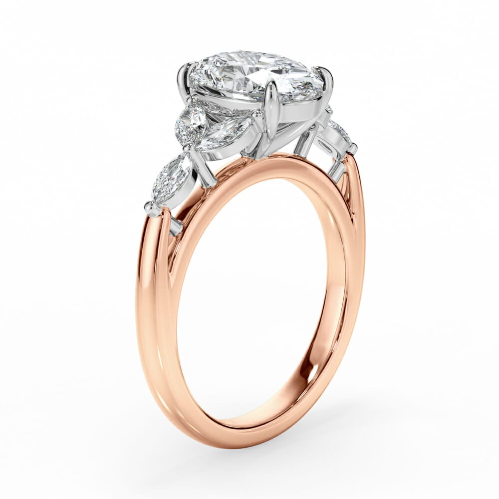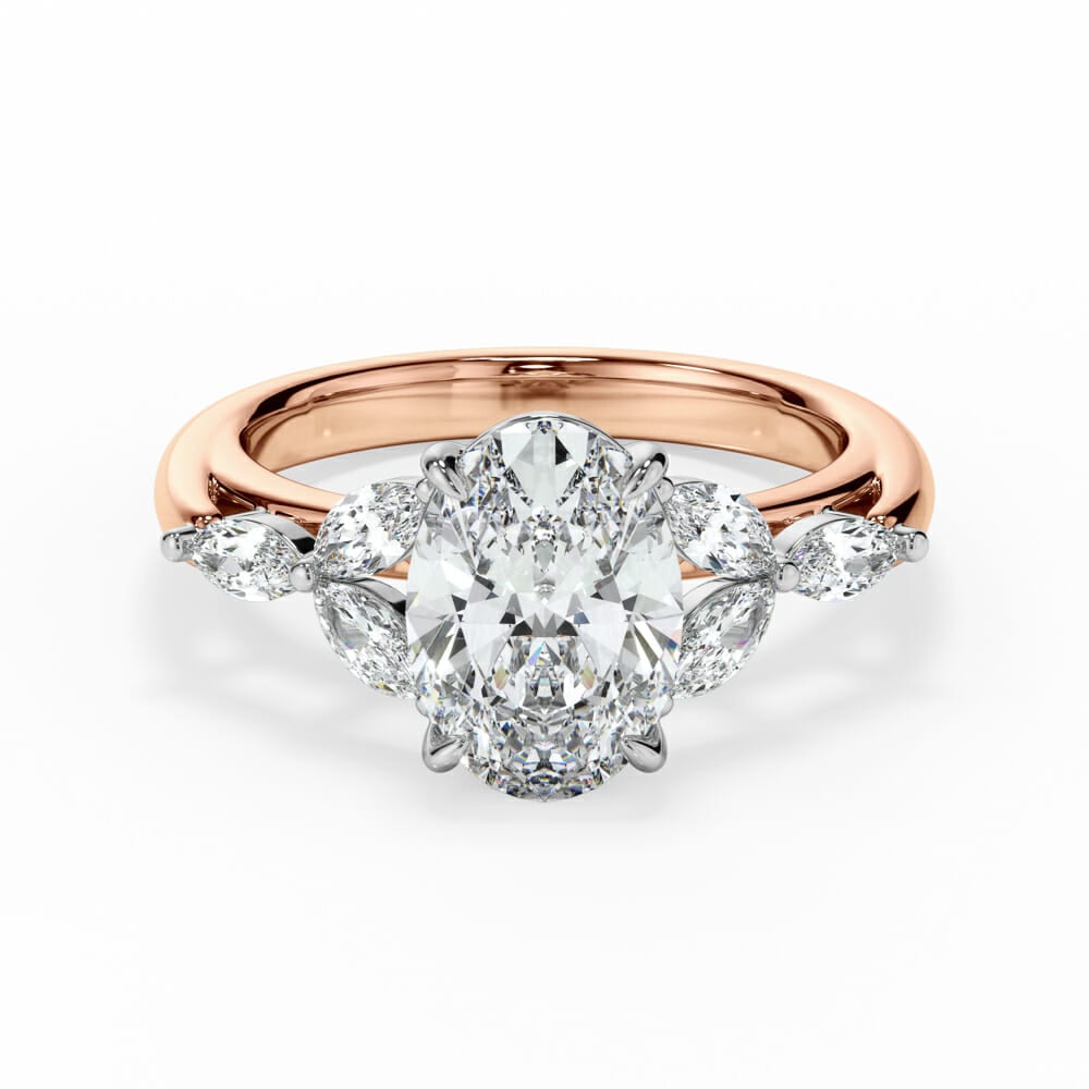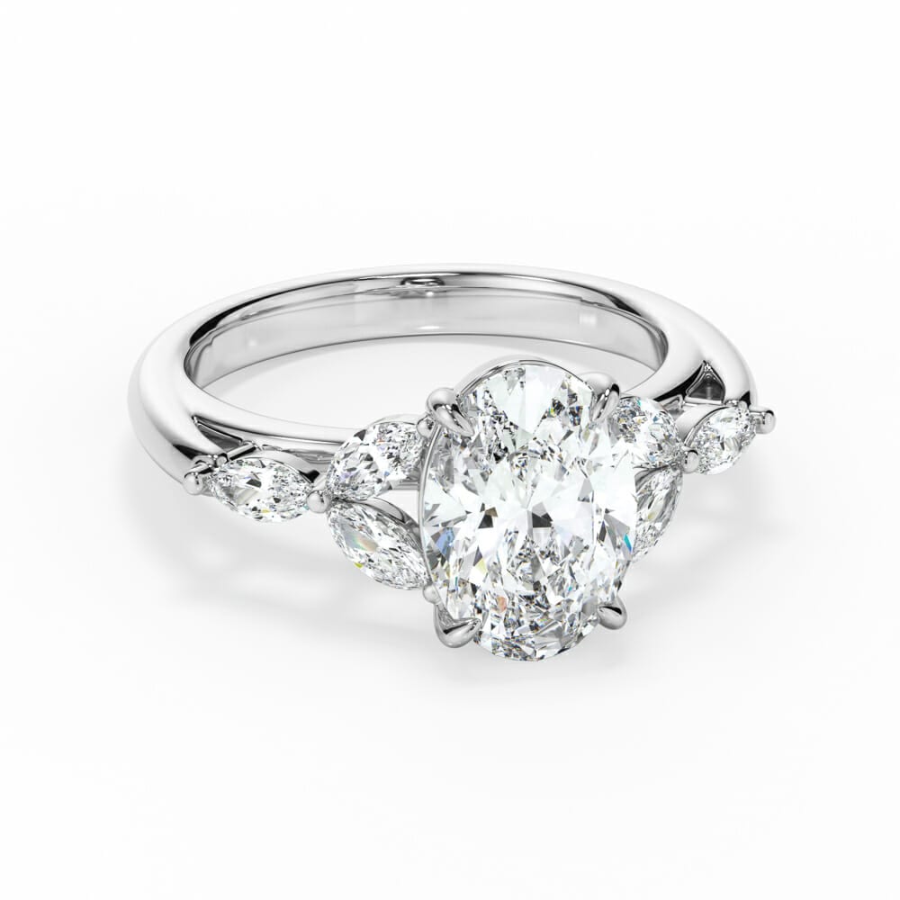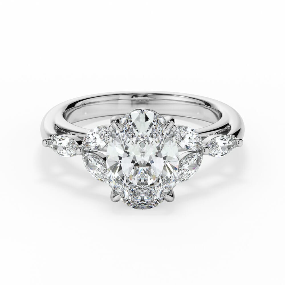 Oval Cut Diamond Engagement Ring with Elegant Marquise Side Stones