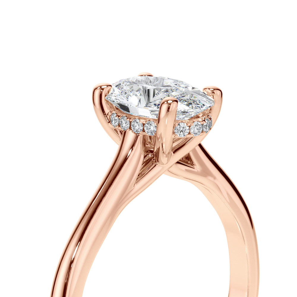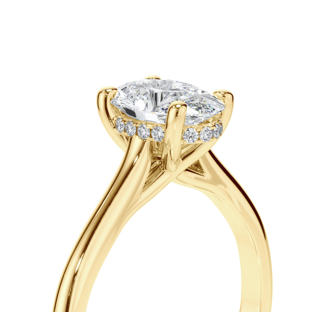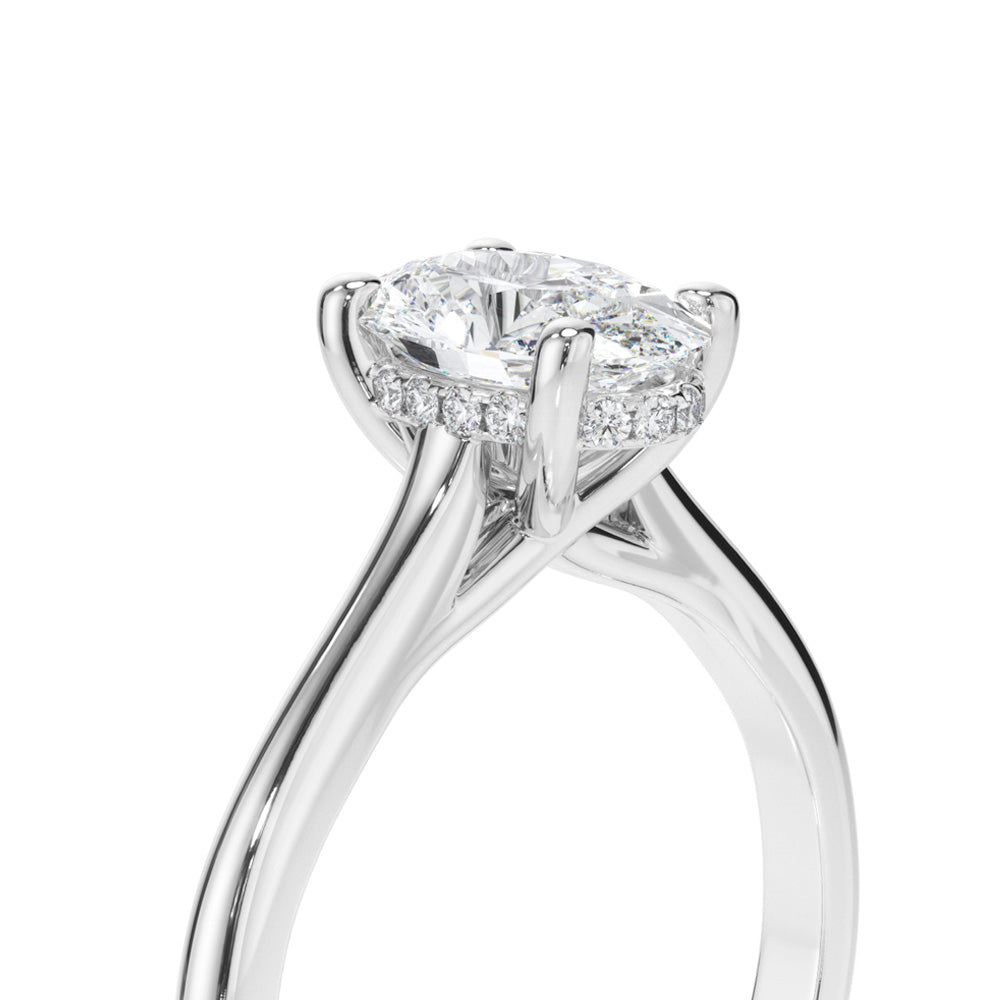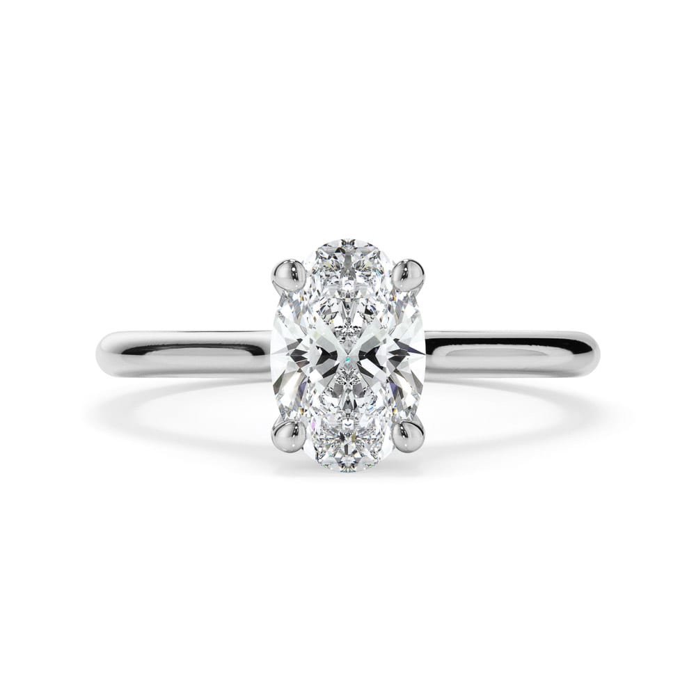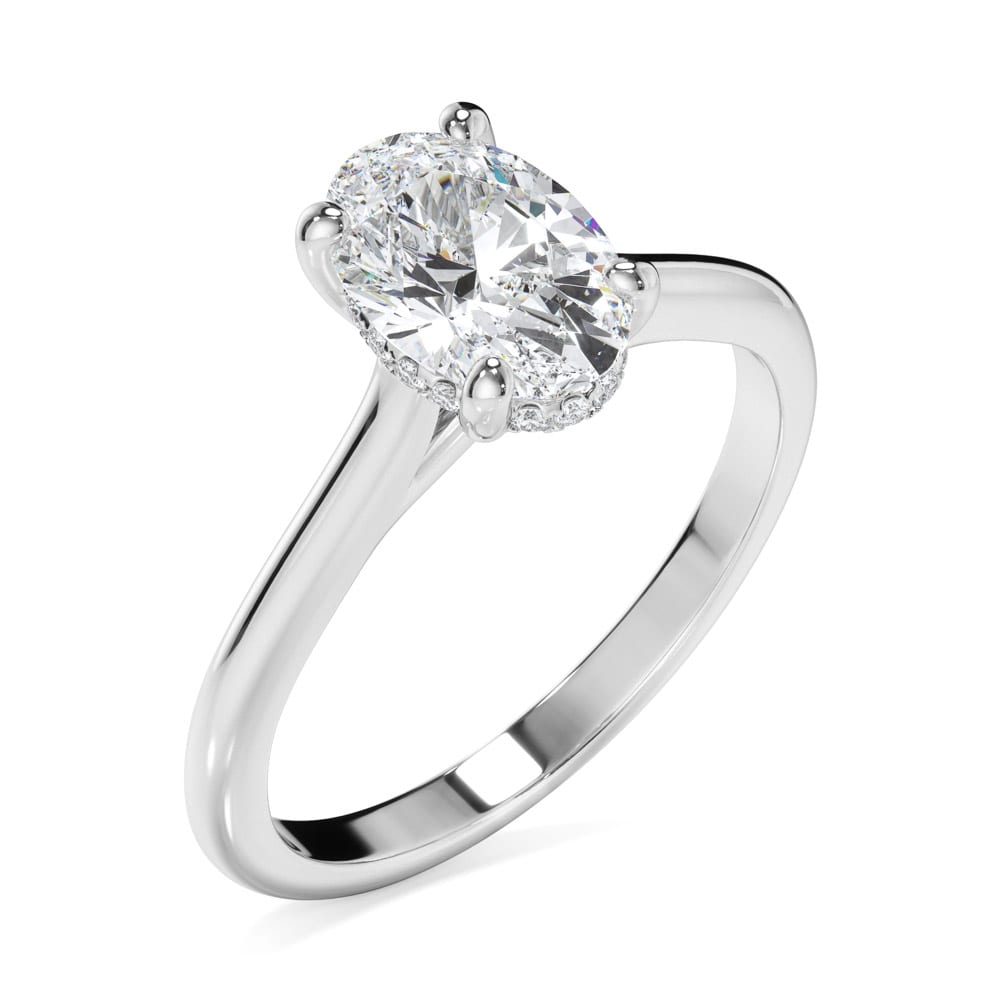 Oval Cut Diamond Engagement Ring with Sleek Plain Band and Hidden Halo