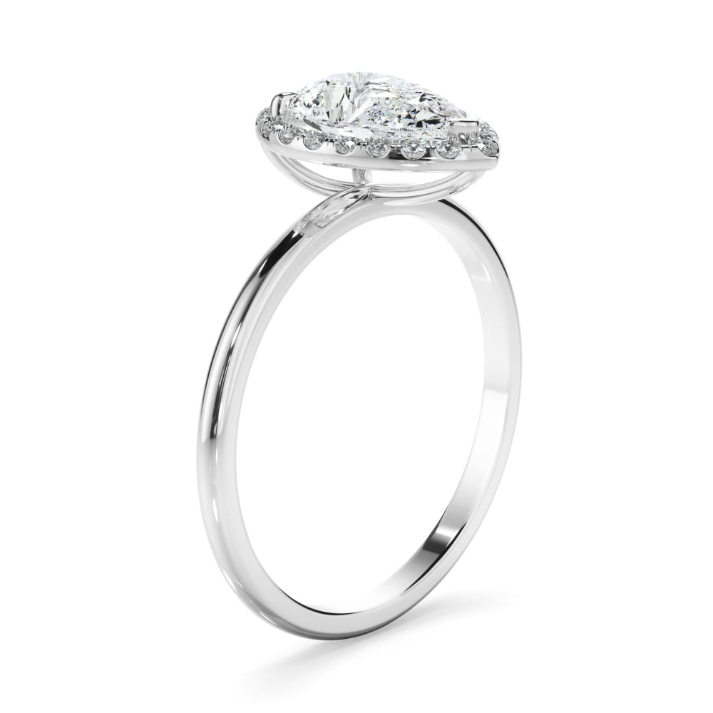 Pear Cut Diamond Halo Engagement Ring with Sleek Plain Band