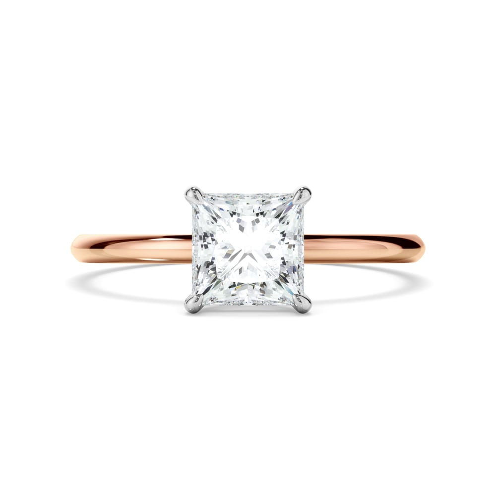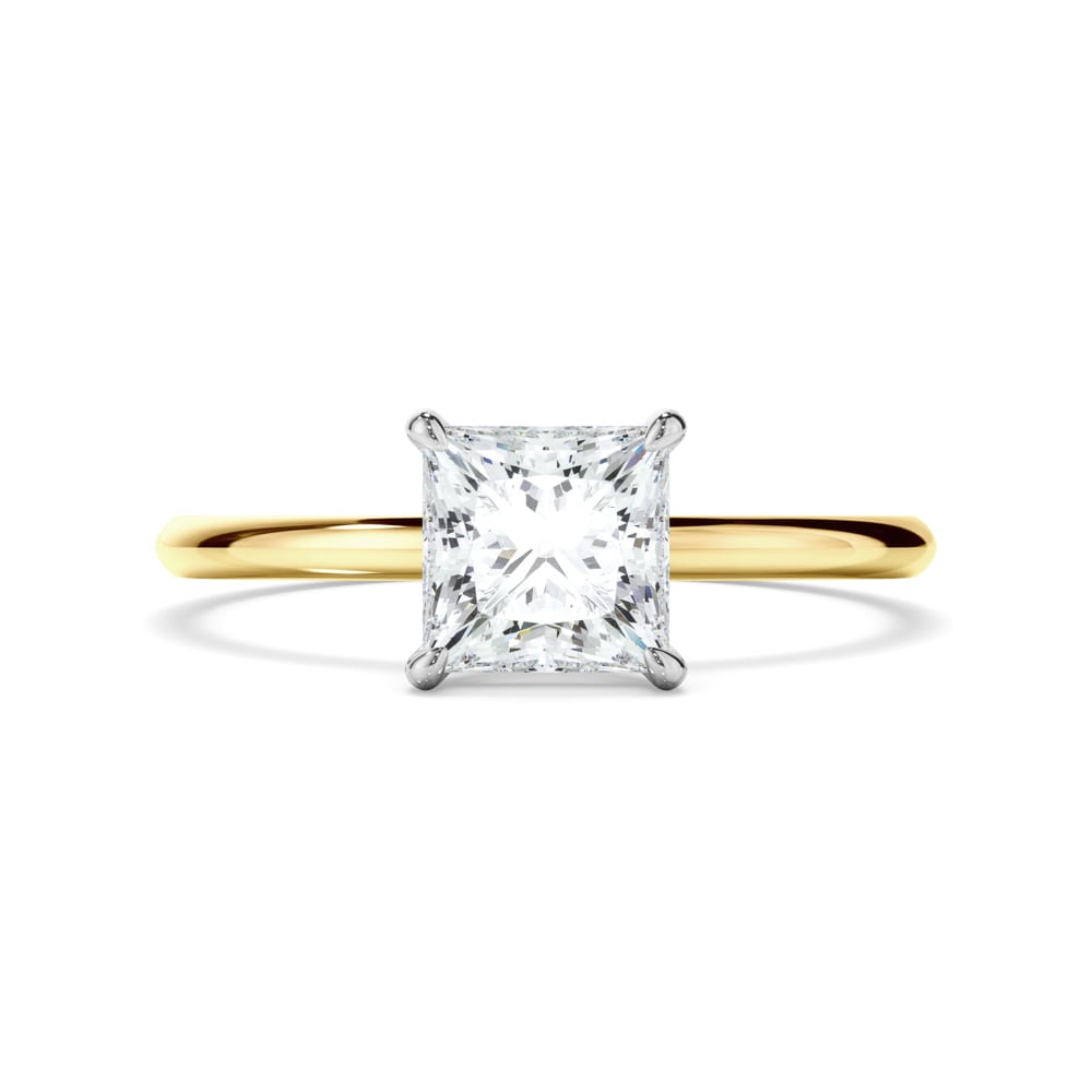 Classic elegance meets refined craftsmanship in this 18ct yellow and white gold solitaire engagement ring. A stunning princess-cut diamond is securely set in a white gold six-claw setting, allowing for maximum brilliance. The high-polished yellow gold 1.9mm band provides a sleek and timeless finish, complemented by a 6.7mm setting height for perfect proportions. Expertly crafted by Robert Cliff Master Jewellers.