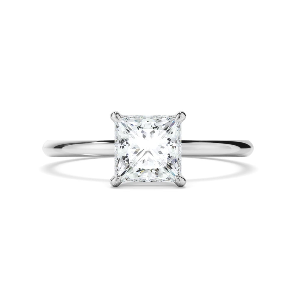 Princess Cut Diamond Engagement Ring with Classic Four-Claw Setting and Smooth Rounded Band
