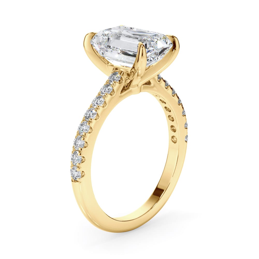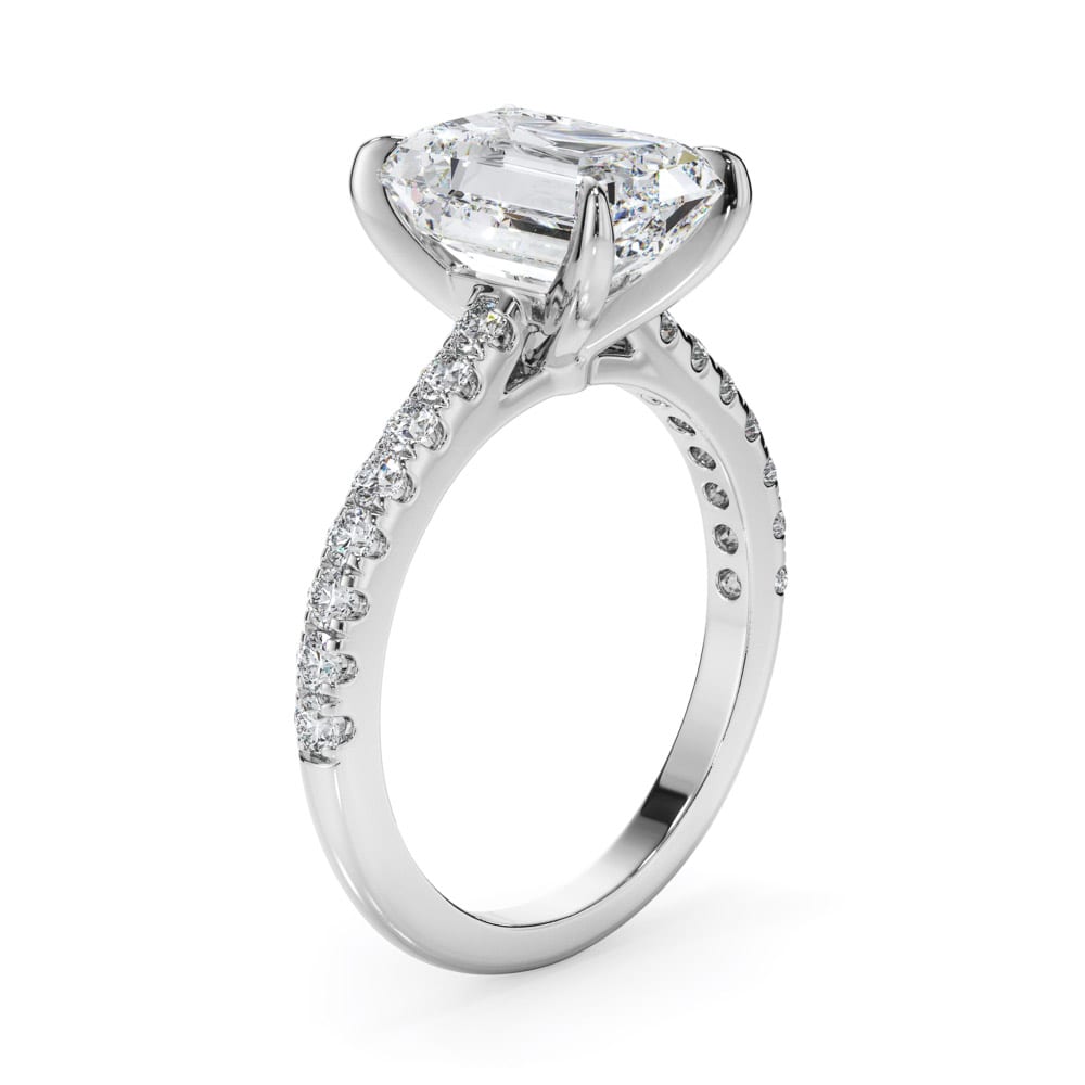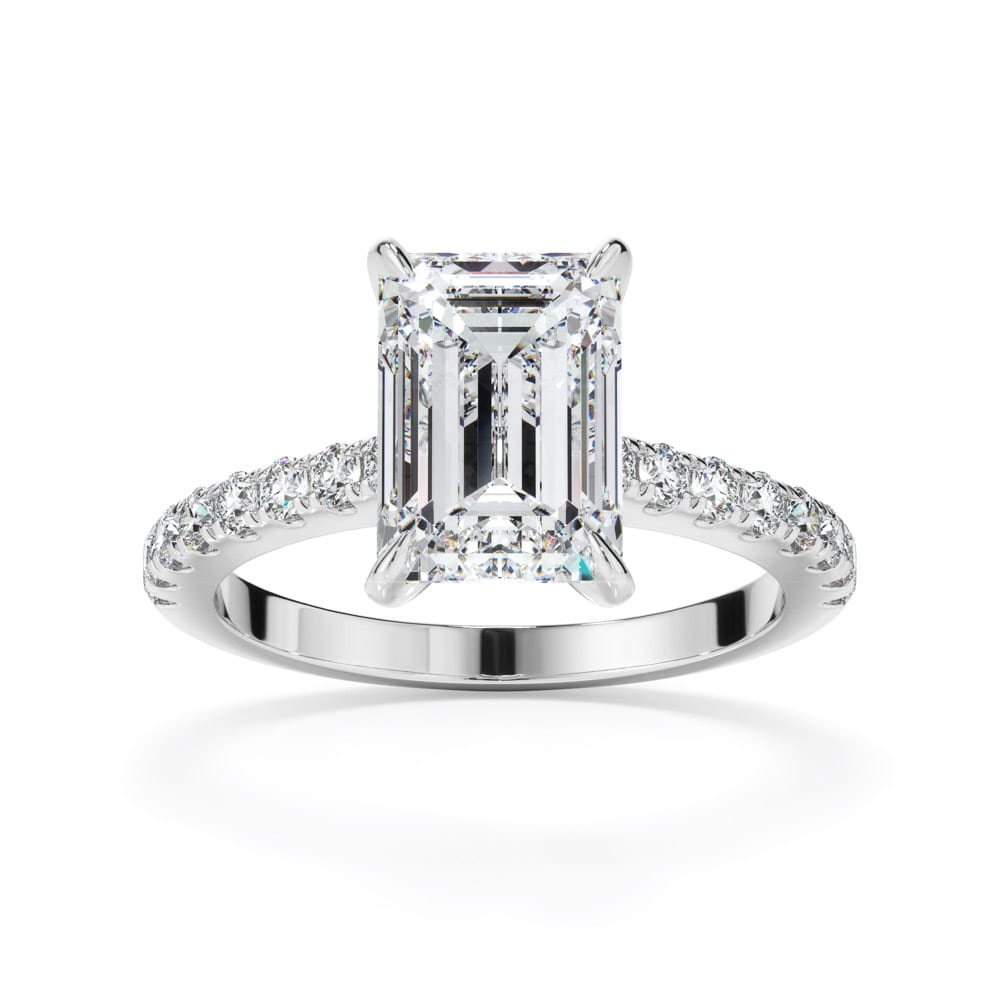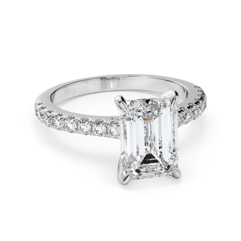 Timeless and refined, this emerald-cut engagement ring is an exquisite symbol of enduring love. A sleek, high-polished band highlights the emerald-cut centre diamond, secured in an elegant four-claw setting. Sparkling accent diamonds along the shoulders add brilliance and sophistication to the design. The band measures 1.8mm in width, while the 7.8mm setting height enhances its striking profile. This beautiful ring seamlessly blends classic allure with modern elegance.