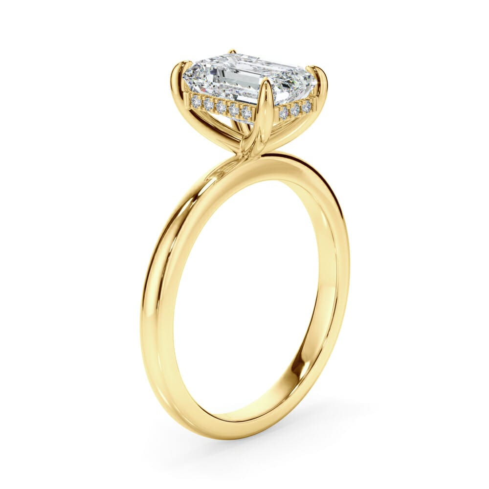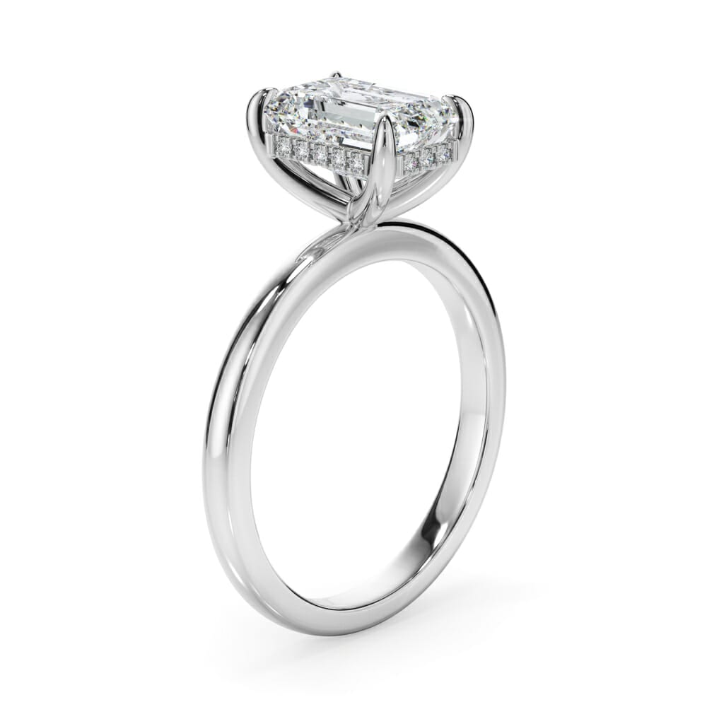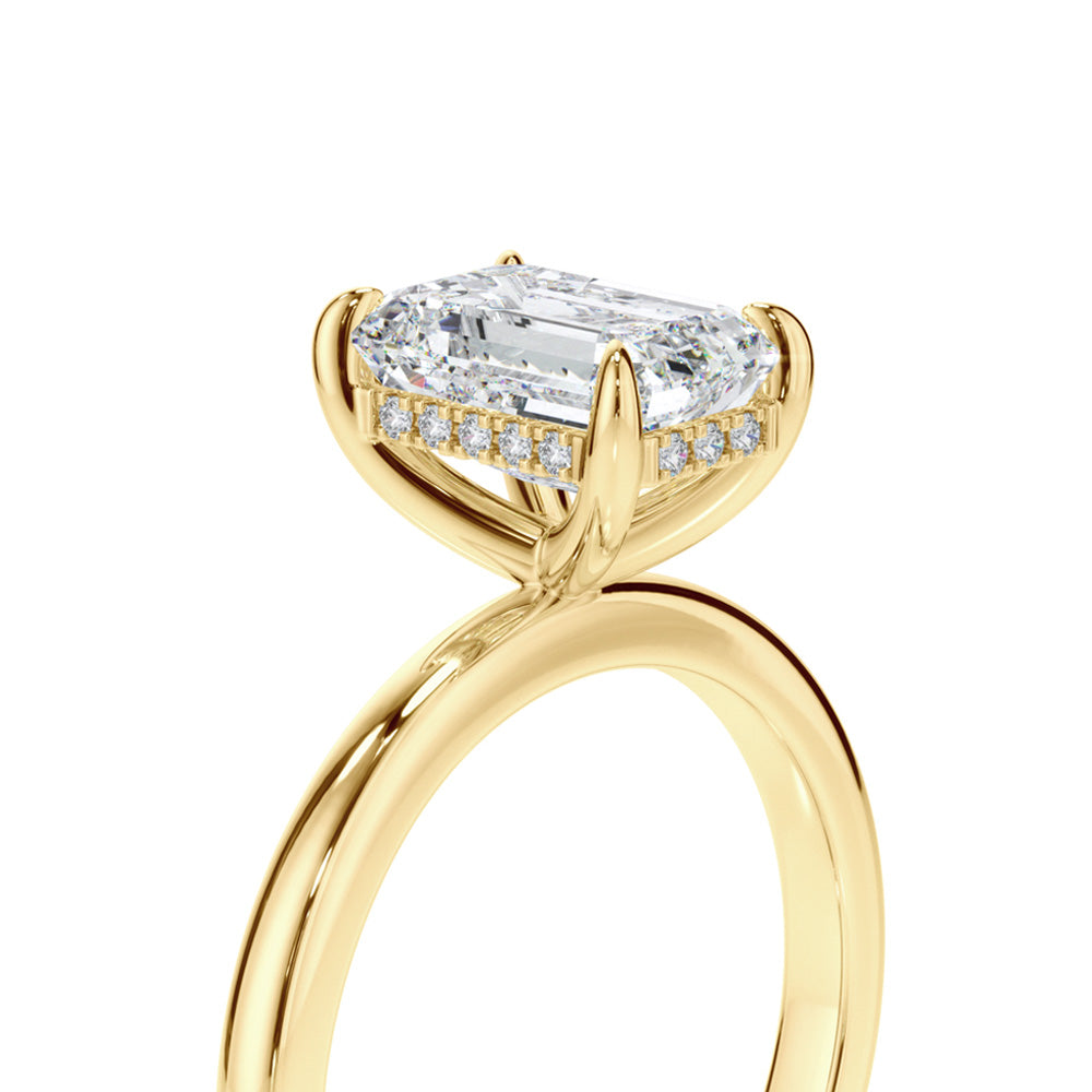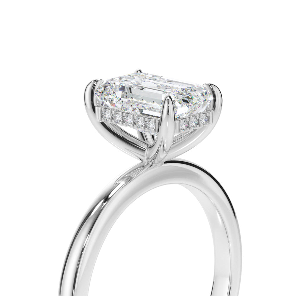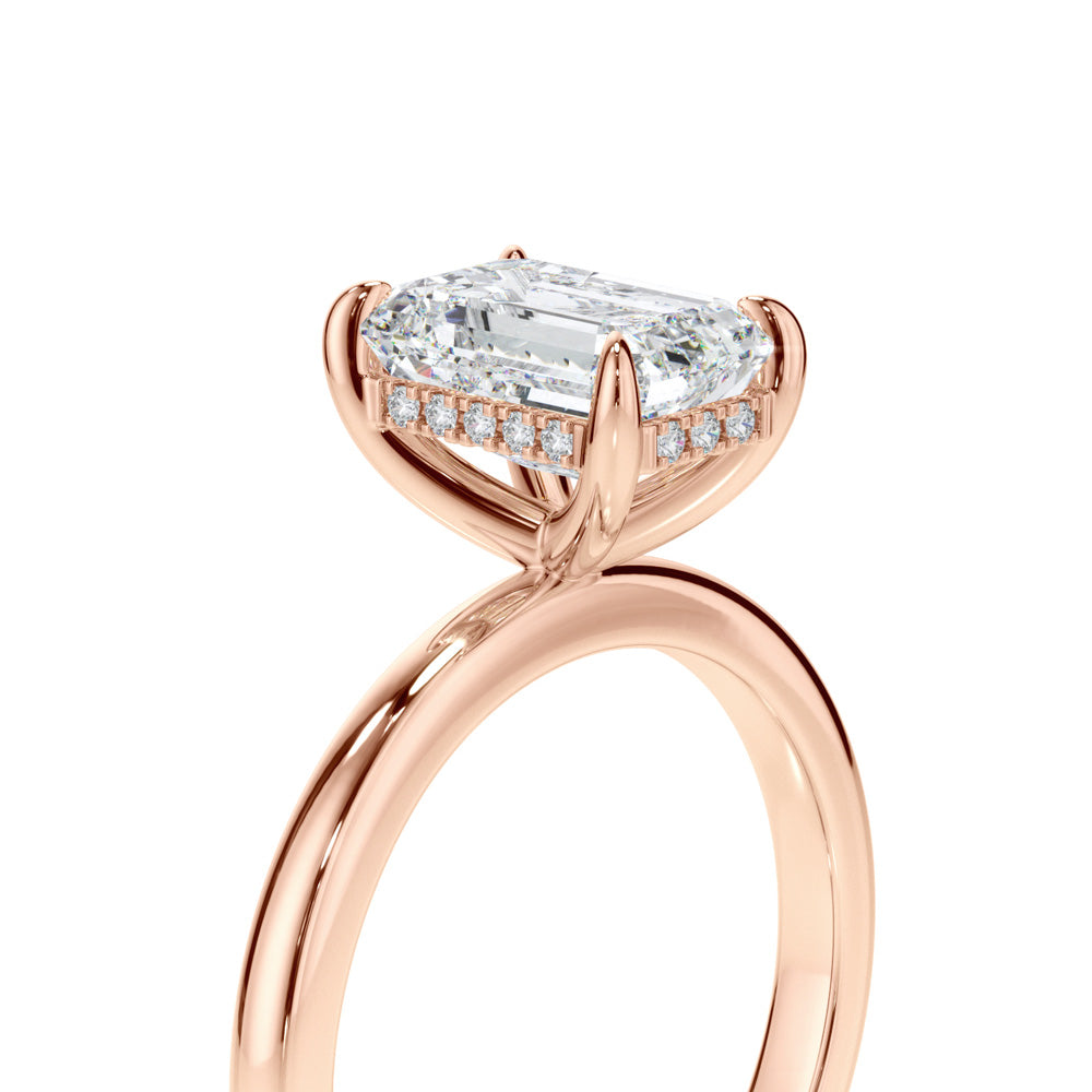 Radiant Cut Diamond Engagement Ring with Sleek Plain Band and Hidden Halo