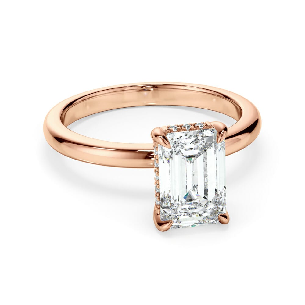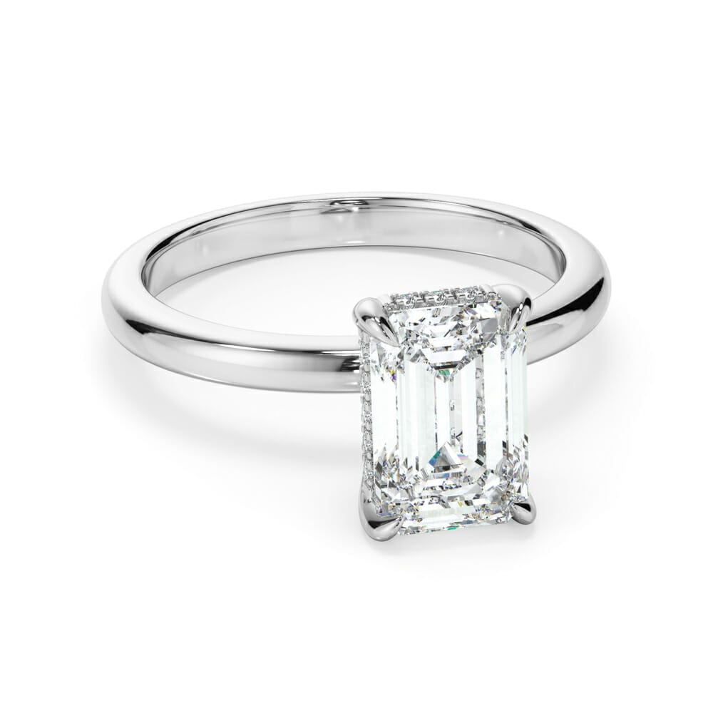 This breathtaking engagement ring showcases a radiant cut diamond, elegantly secured in a four-claw setting for maximum brilliance. A hidden halo of micro claw-set brilliant cut diamonds beneath the centre stone adds a touch of subtle sparkle. The high-polished, rounded 2.1mm band enhances its timeless appeal, while the 7.7mm setting height ensures a striking presence. Expertly designed by Robert Cliff Master Jewellers.