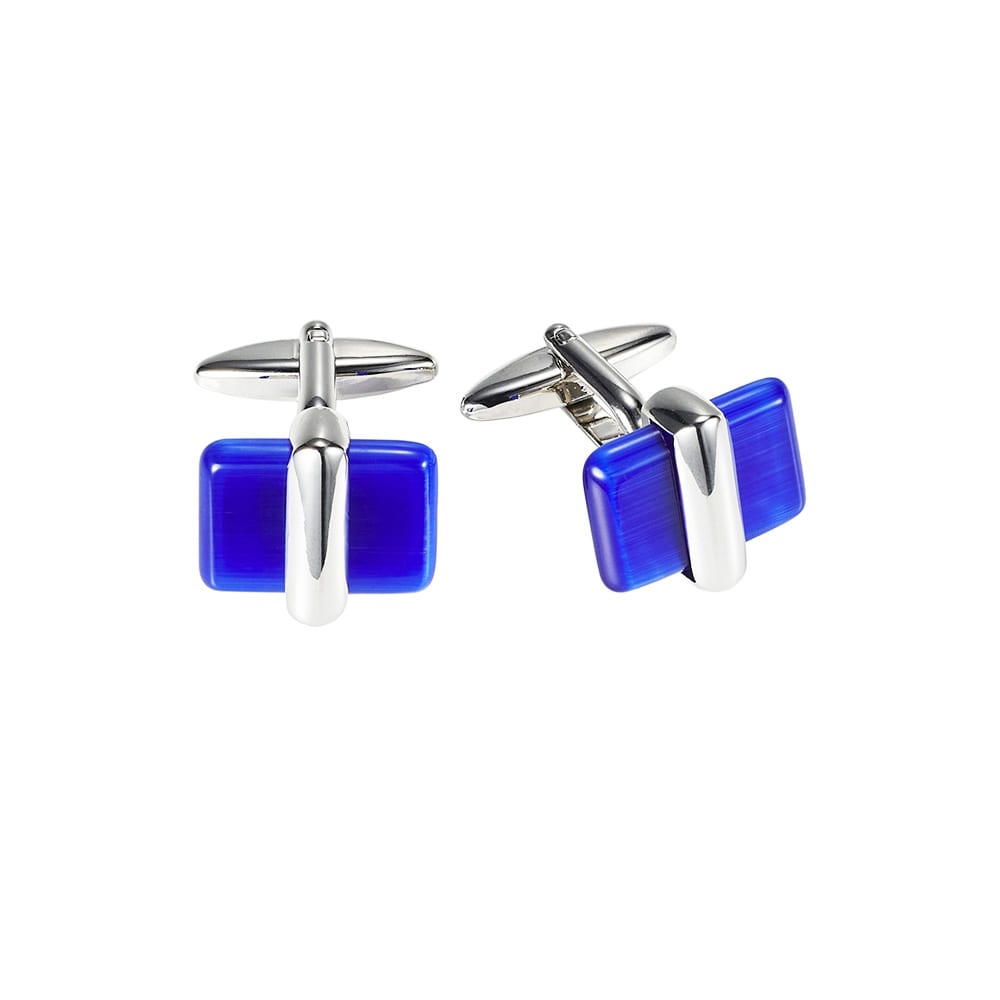Rhodium Plated & Azure Blue Cat’s Eye Cufflinks