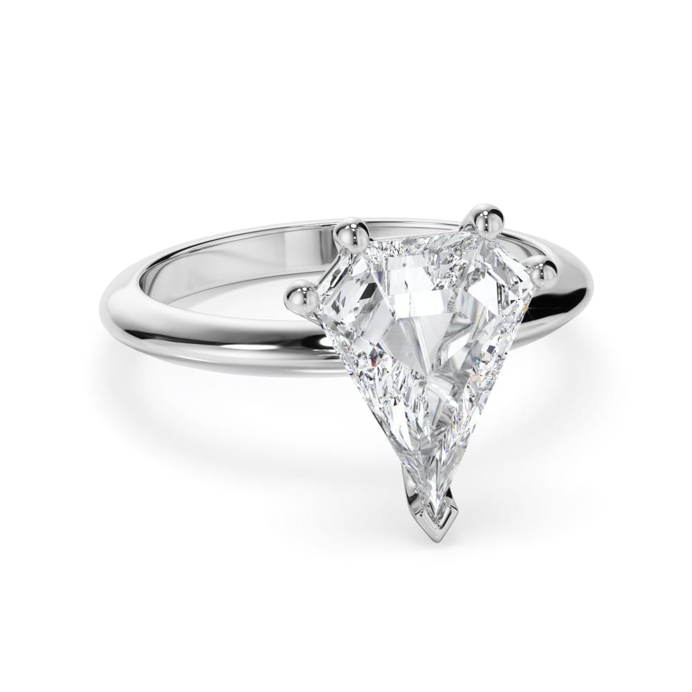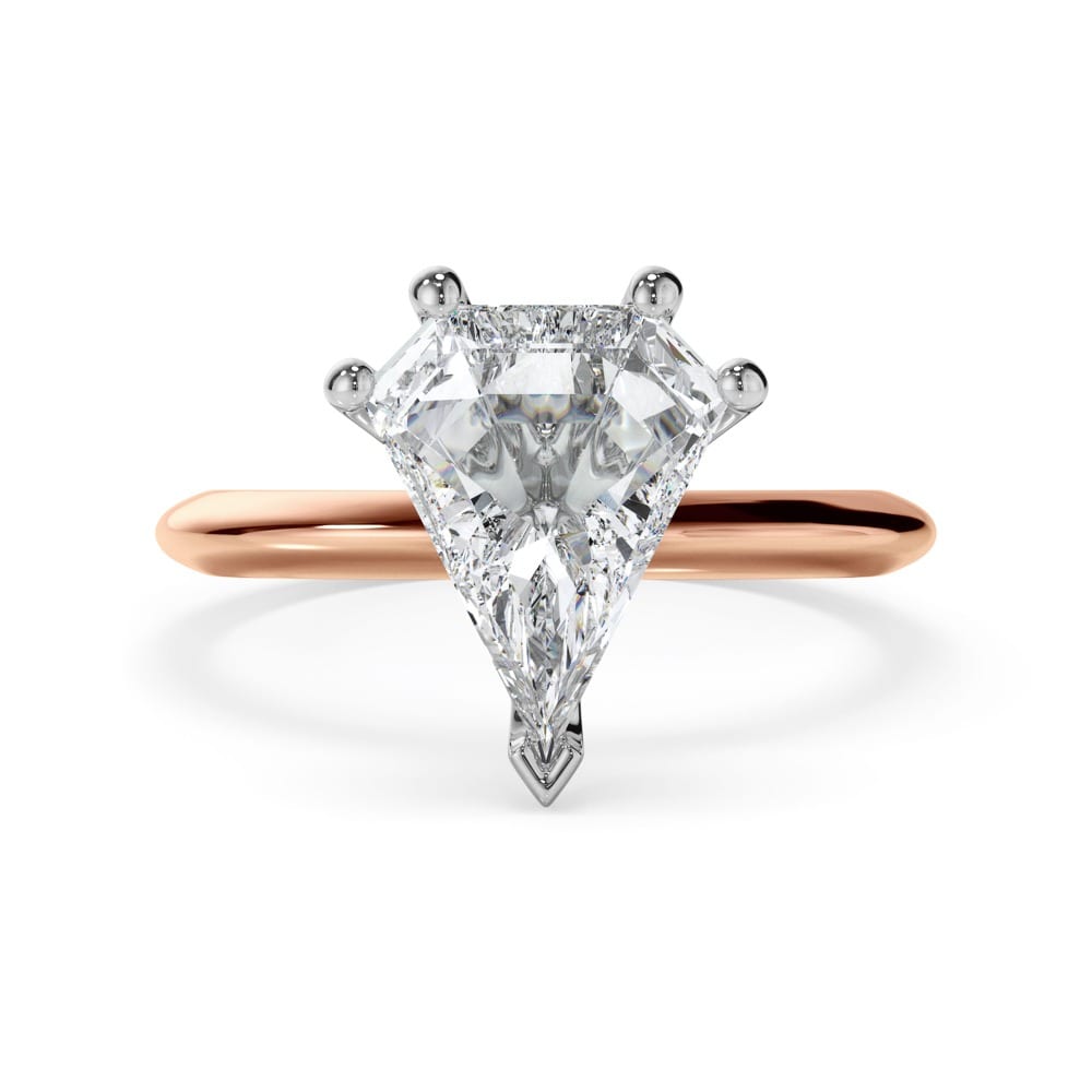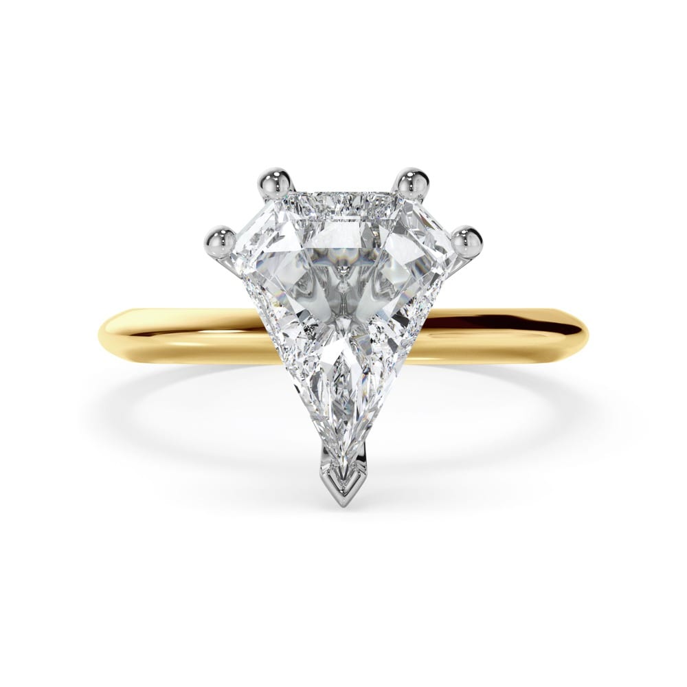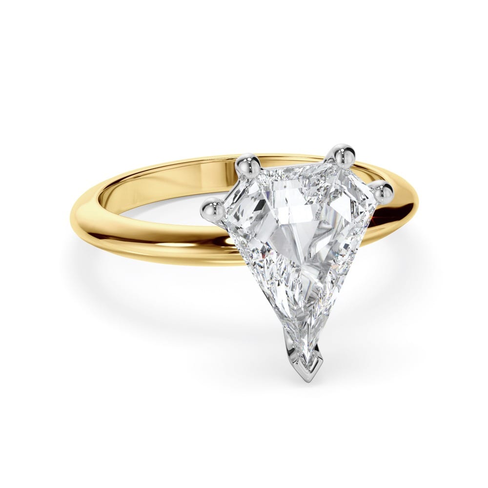 This exquisite engagement ring showcases a striking kite-cut diamond, elegantly secured in a white gold six-claw setting to enhance its brilliance. The high-polished 2.2mm yellow gold band offers a timeless contrast, while the 6.5mm setting height ensures perfect proportions. Expertly crafted by Robert Cliff Master Jewellers for a refined and sophisticated look.