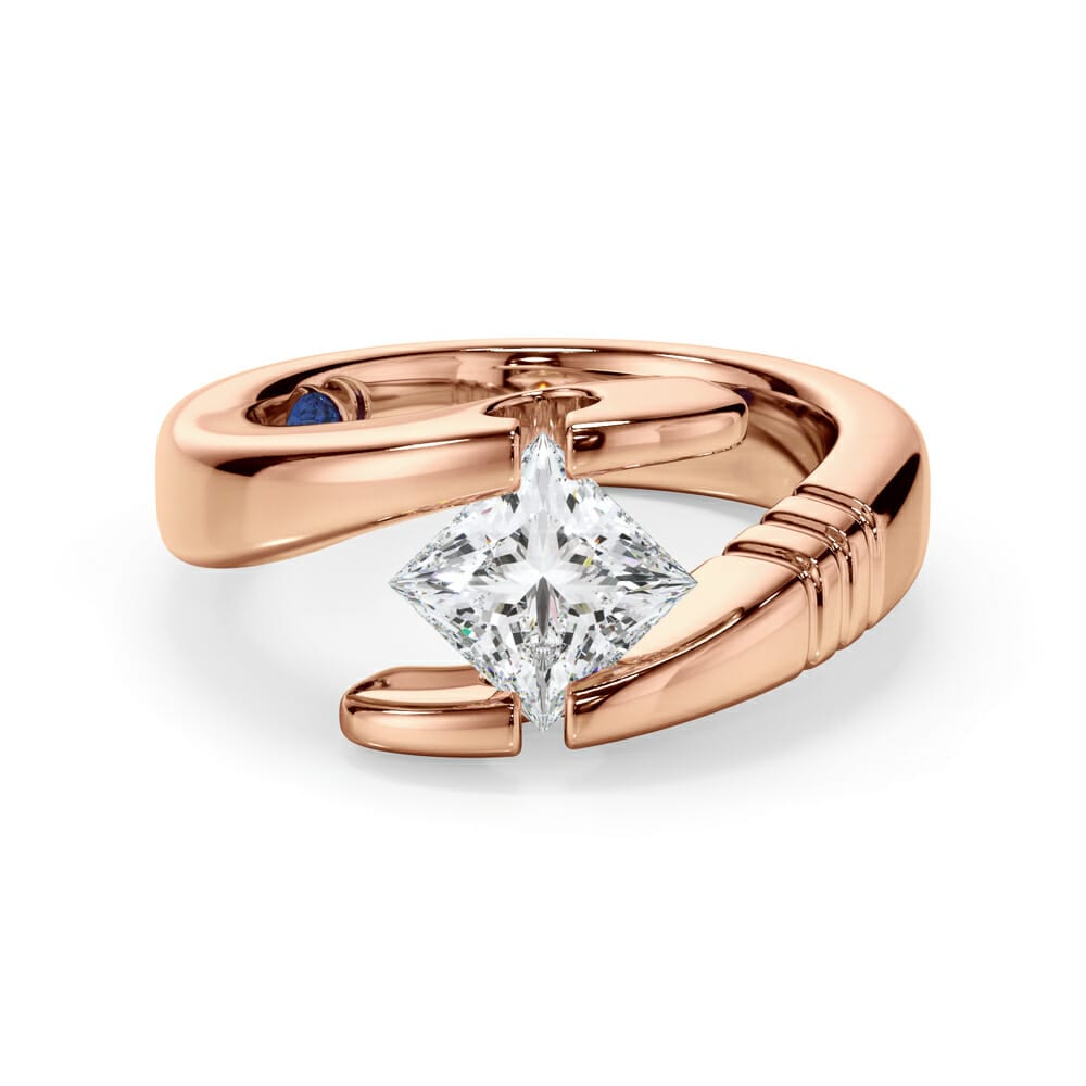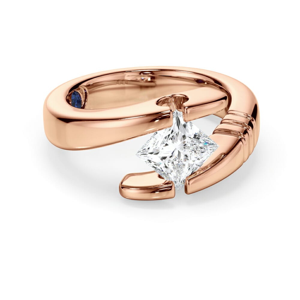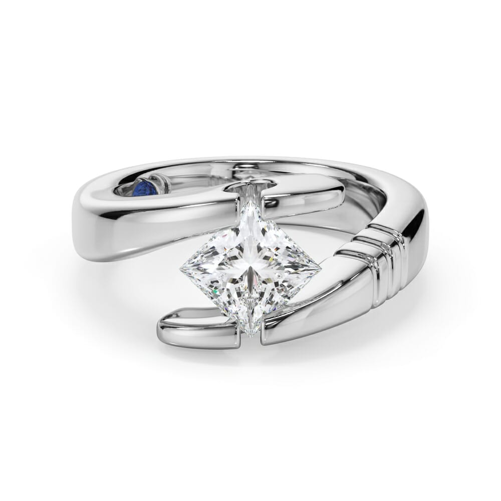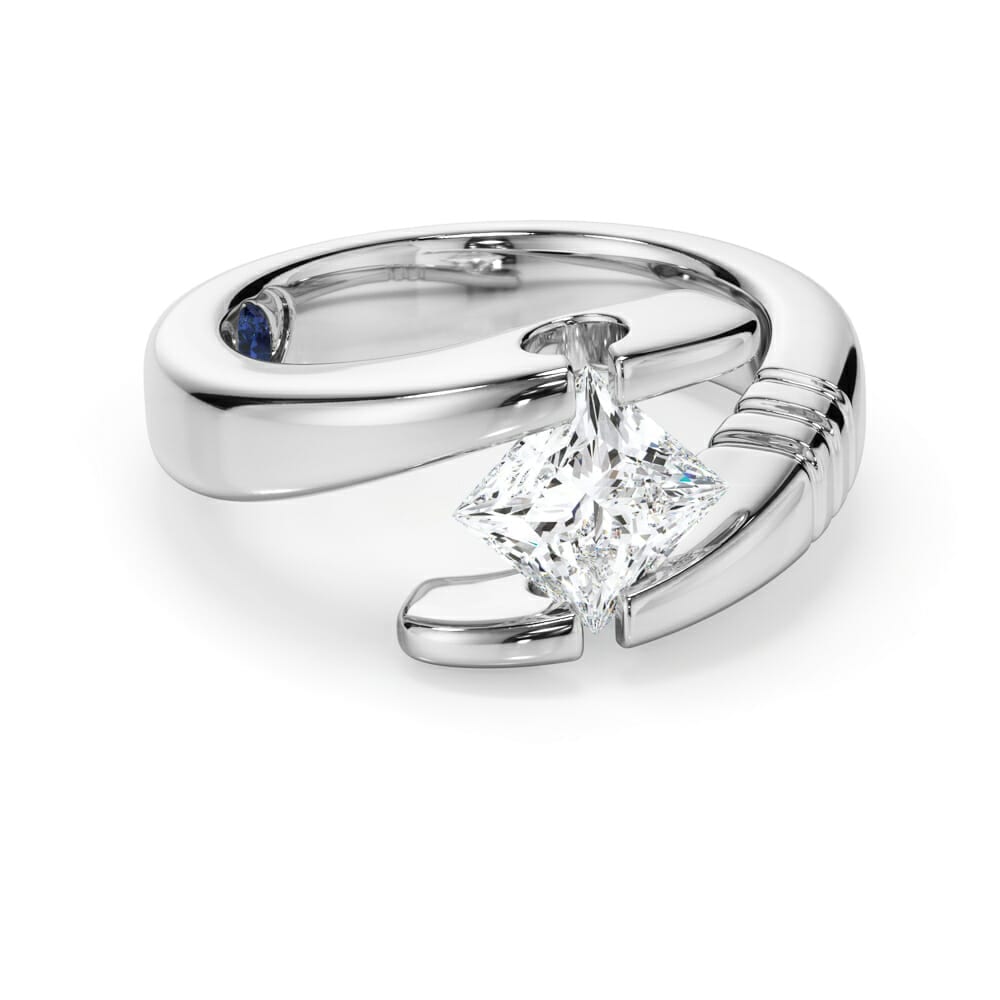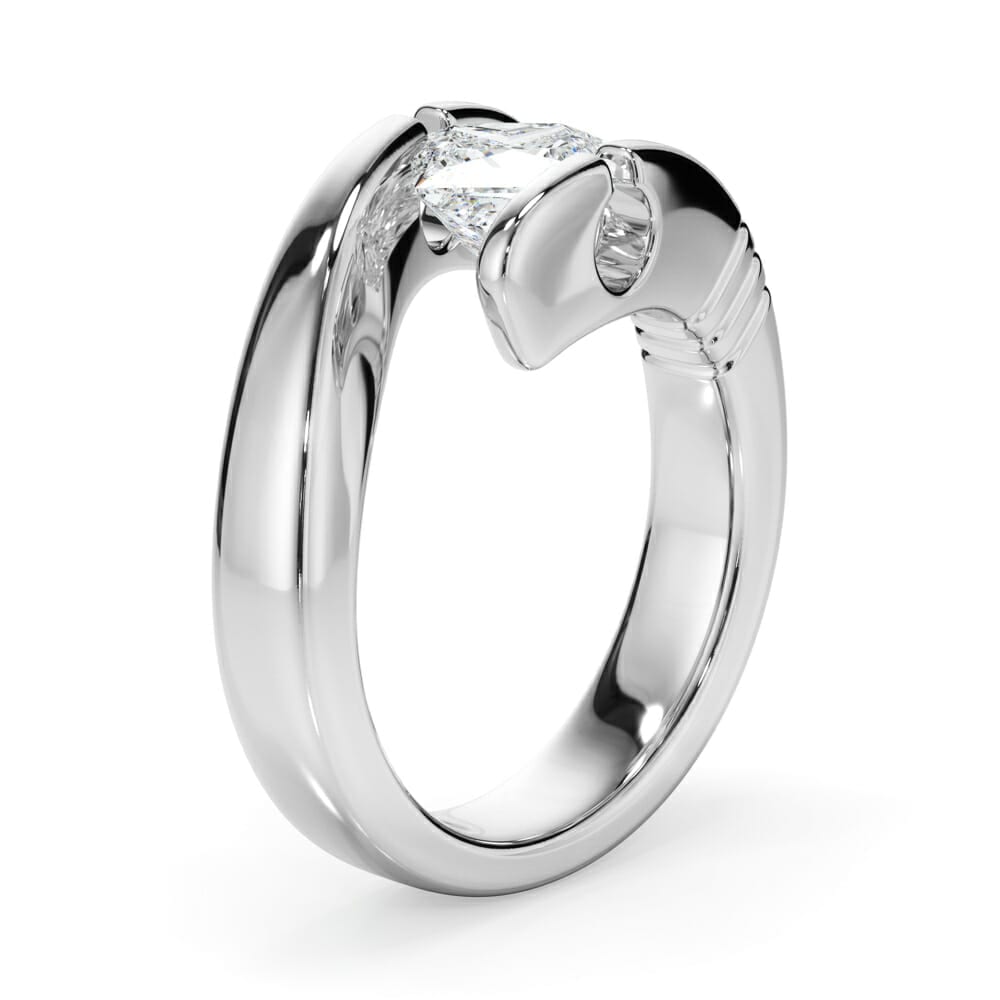 Sideways Set Princess Cut Diamond Engagement Ring with an Elegant Split Band
