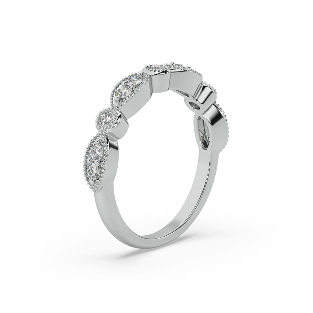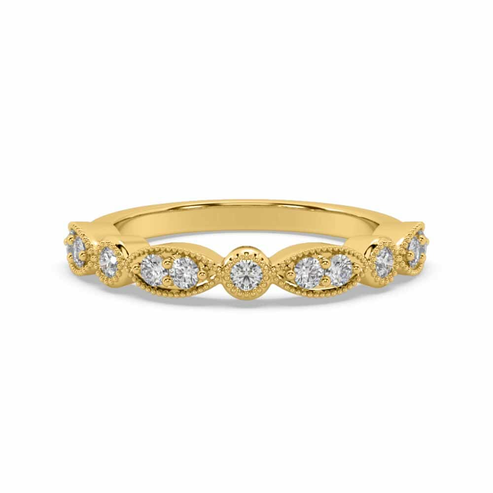 Inspired by vintage elegance, this timeless design features alternating round and marquise shapes bead set with brilliant cut mined diamonds. The high polished band measures 1.9mm in width, offering a classic and graceful finish.
