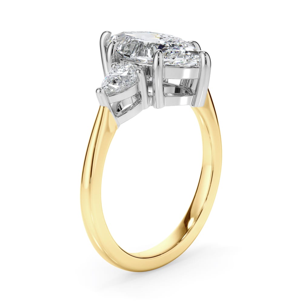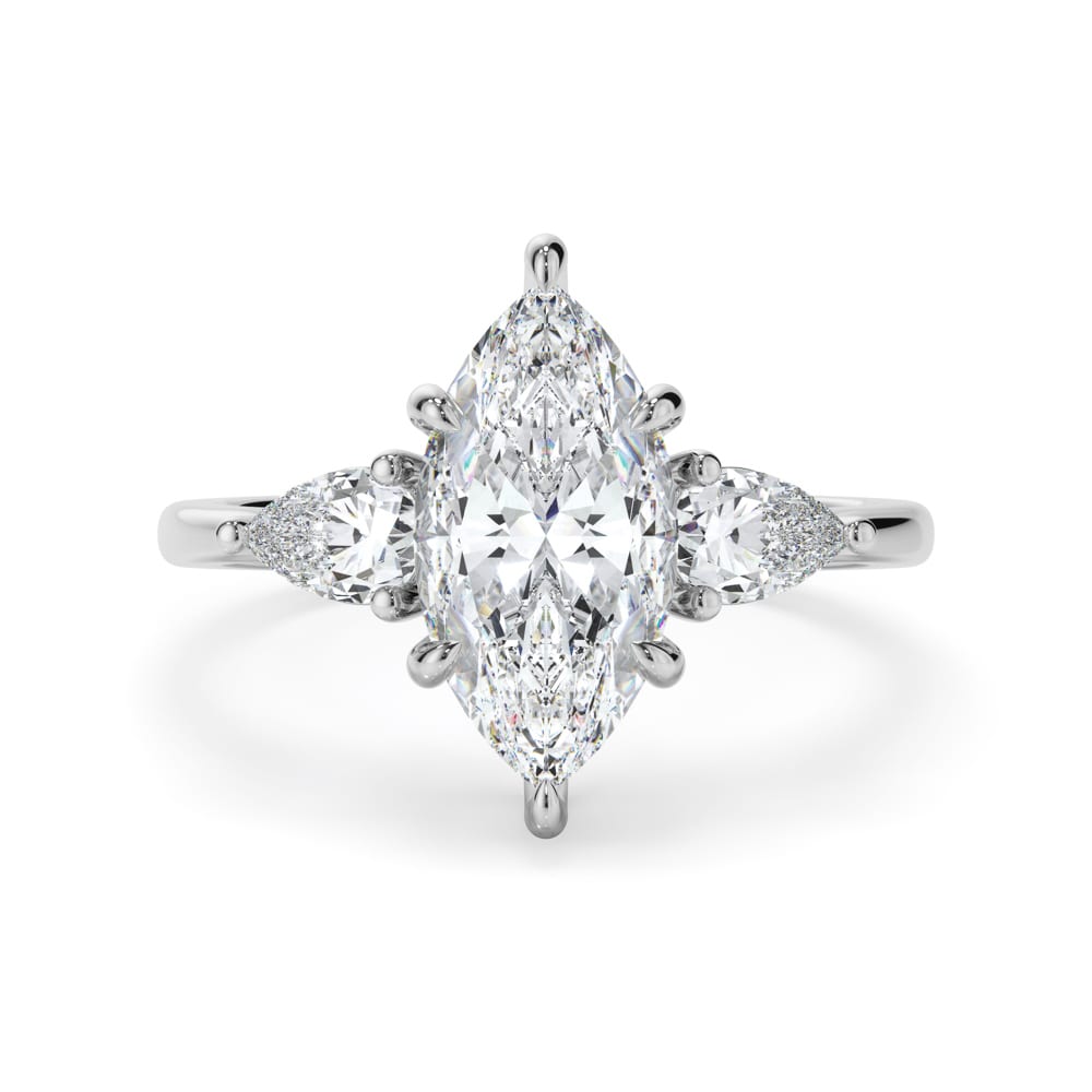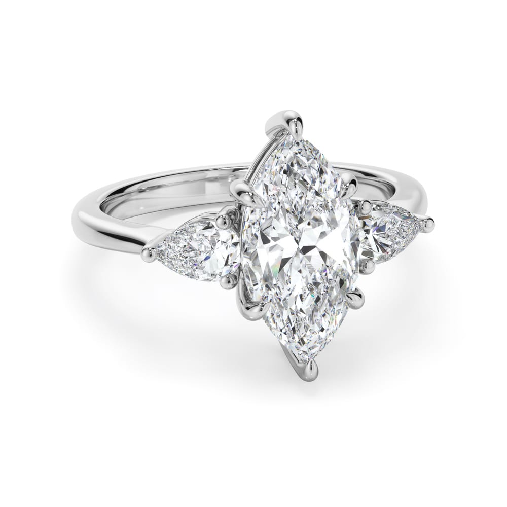 Timeless Trilogy Marquise Cut Diamond Engagement Ring with a Sleek Smooth rounded Band