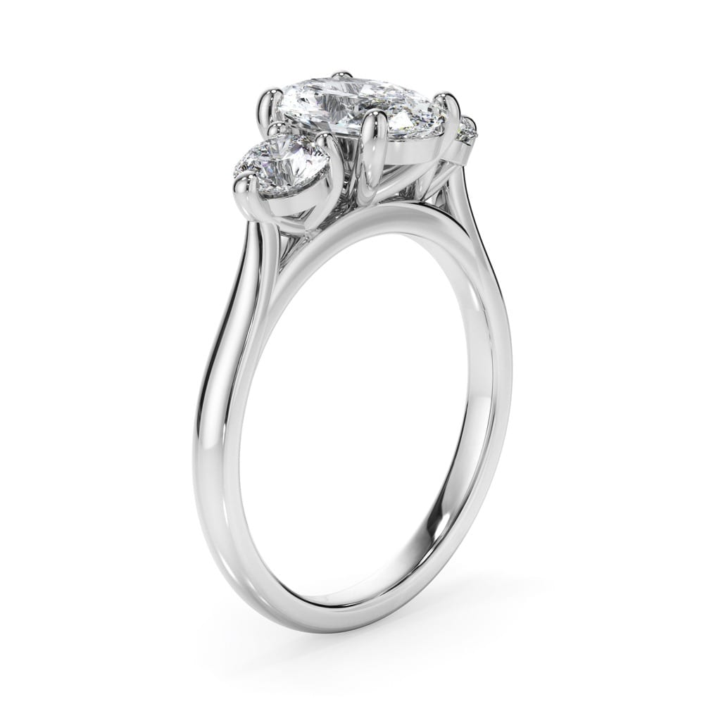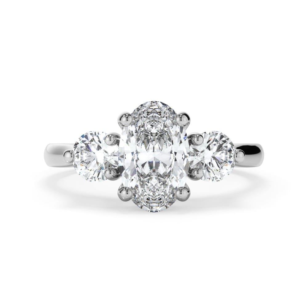 Timeless Trilogy Oval Cut Diamond Engagement Ring with a Sleek Smooth rounded Band