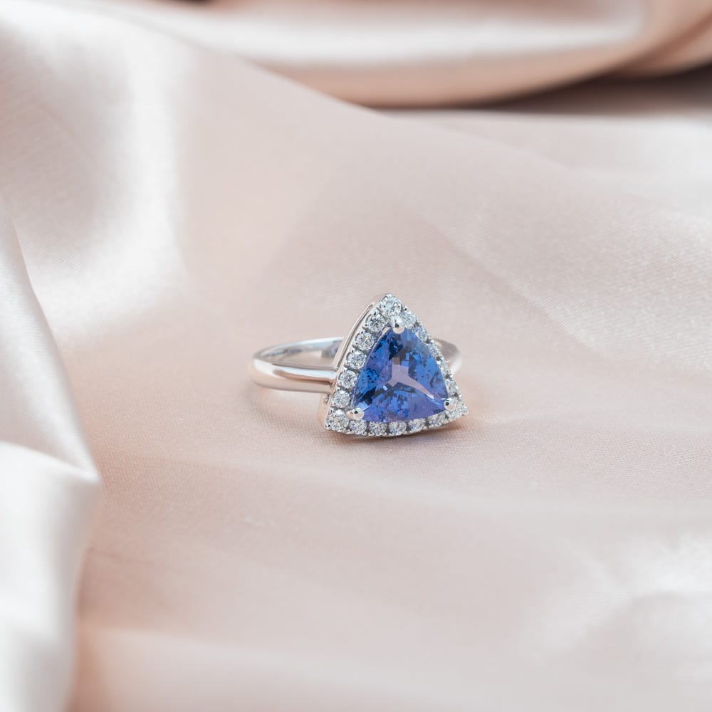 Trilliant Cut Tanzanite Halo Ring